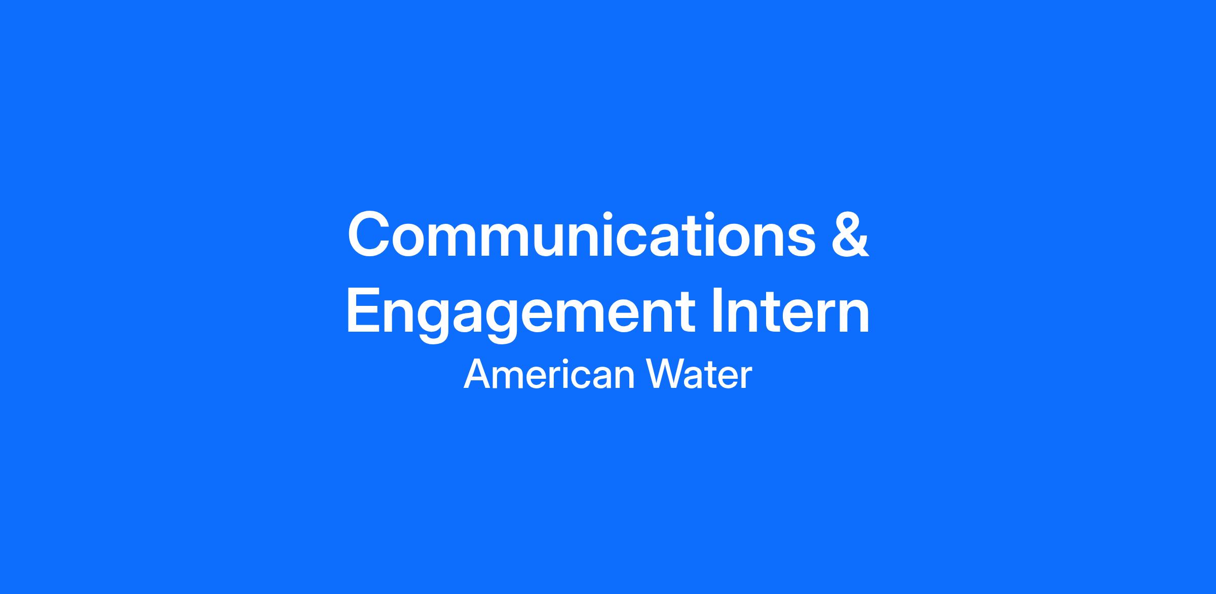 About the Internship: Join the AW2030 Project Team as a Communications Intern and explore exciting career opportunities in the water and wastewater field. As the largest regulated water and wastewater utility company in the U.S., American Water (NYSE: AWK) has been providing safe, clean, reliable, and affordable services since 1886. We serve over 14 million people across 14 regulated jurisdictions and 18 military installations. Our 6,500 professionals leverage their expertise and our national scale to deliver excellent outcomes for customers, employees, investors, and stakeholders.