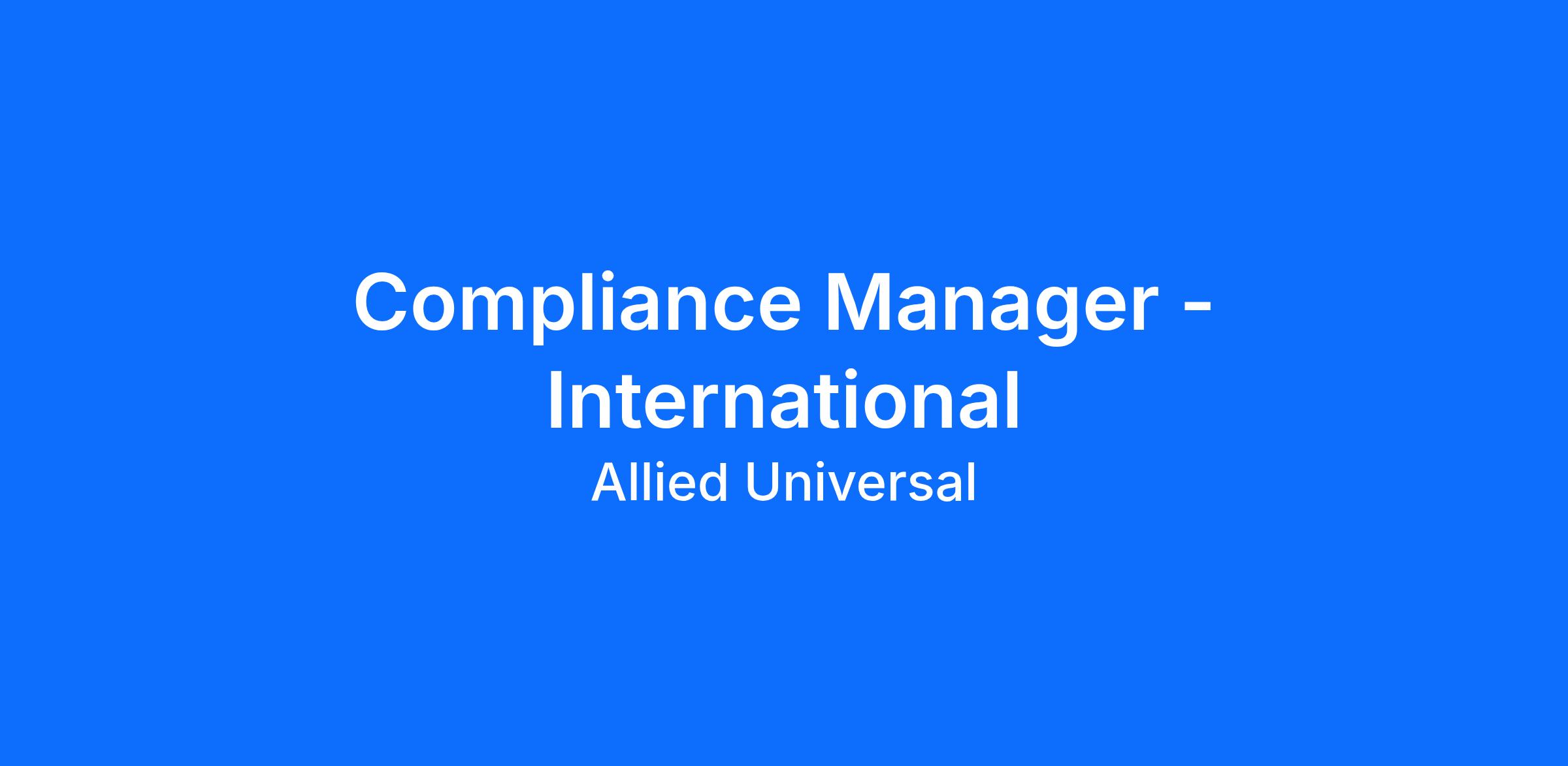 Allied Universal® is hiring a Compliance Manager - International. The Compliance Manager - International is responsible for implementing and managing compliance programs and processes for US Government (USG) contracts outside of the United States. Working with Executive Leadership and Legal Services, the Manager is responsible for ensuring all managers and supervisors involved with the delivery of service for USG programs complete annual ethics and other compliance training programs to ensure adherence to US Federal regulations. Additionally, the Manager will support other areas of contractual and corporate compliance including the Federal Acquisition Regulation, Service Contract Act, System for Award Management, GSA schedule, federal reporting, records management, and subcontractor oversight, training, privacy and safeguarding of sensitive information.