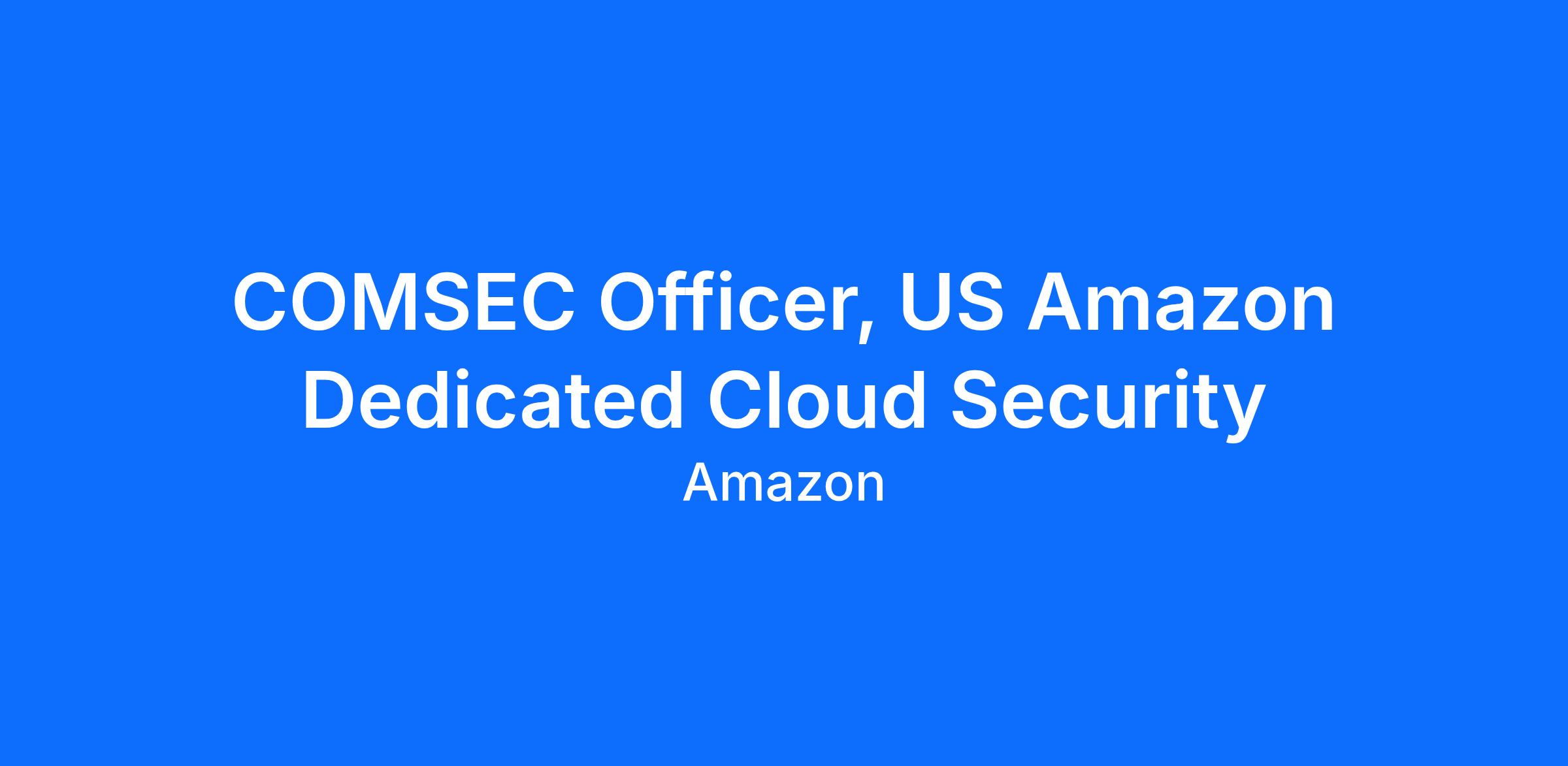 At AWS, we are hiring a Communications Security (COMSEC) Custodian/Officer to help manage and continue to develop the COMSEC Program. This will entail managing/dealing with multiple mission partners and COMSEC accounts found around the United States. It will also require continuous engagement with mission partners and vendors as we continue to scale the program to meet customer needs and requirements.