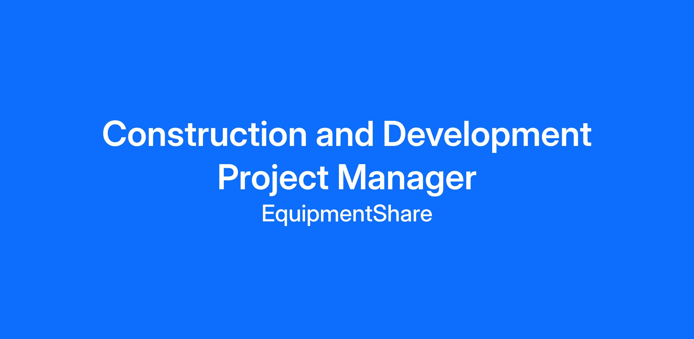 Build the Future with Us — EquipmentShare is Hiring a Construction and Development Project Manager