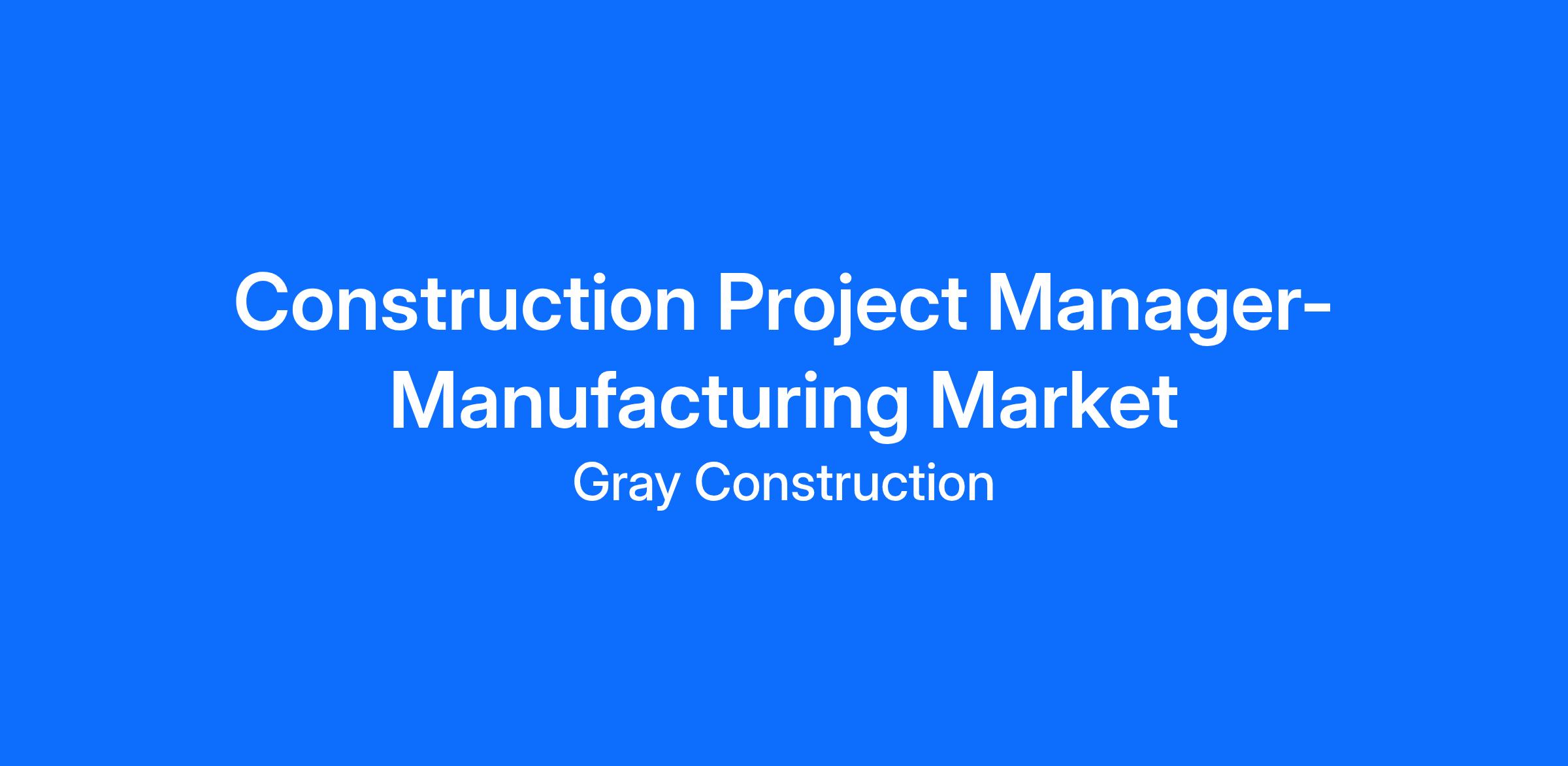 Gray Construction is looking to add an experienced Construction Project Manager- Manufacturing Market to join their team in our Charlotte, NC office.