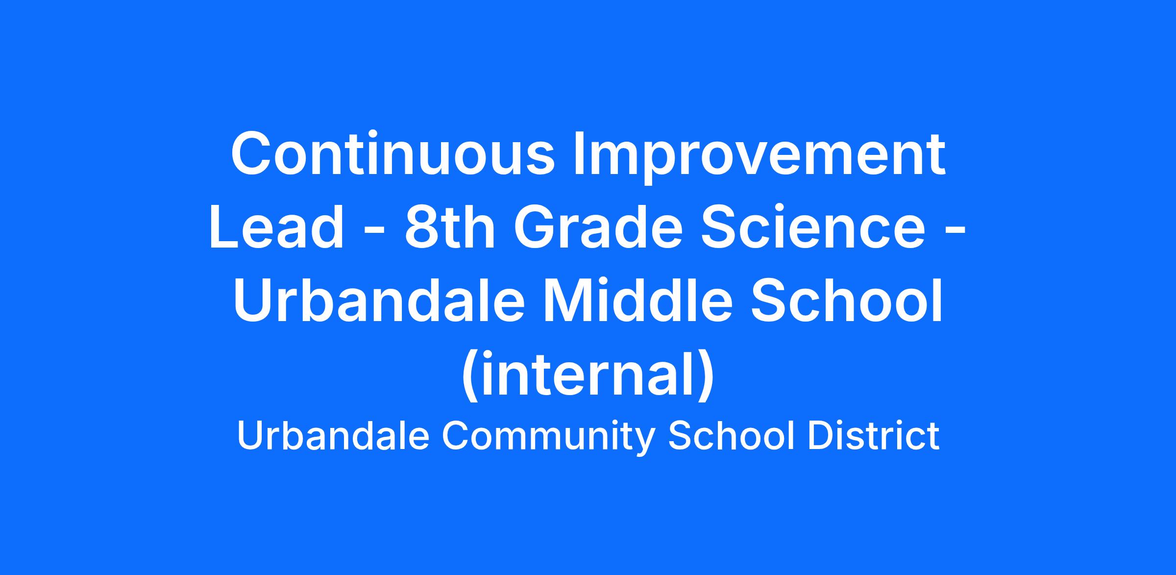 Continuous Improvement Lead - 8th Grade Science - Urbandale Middle School (internal)
