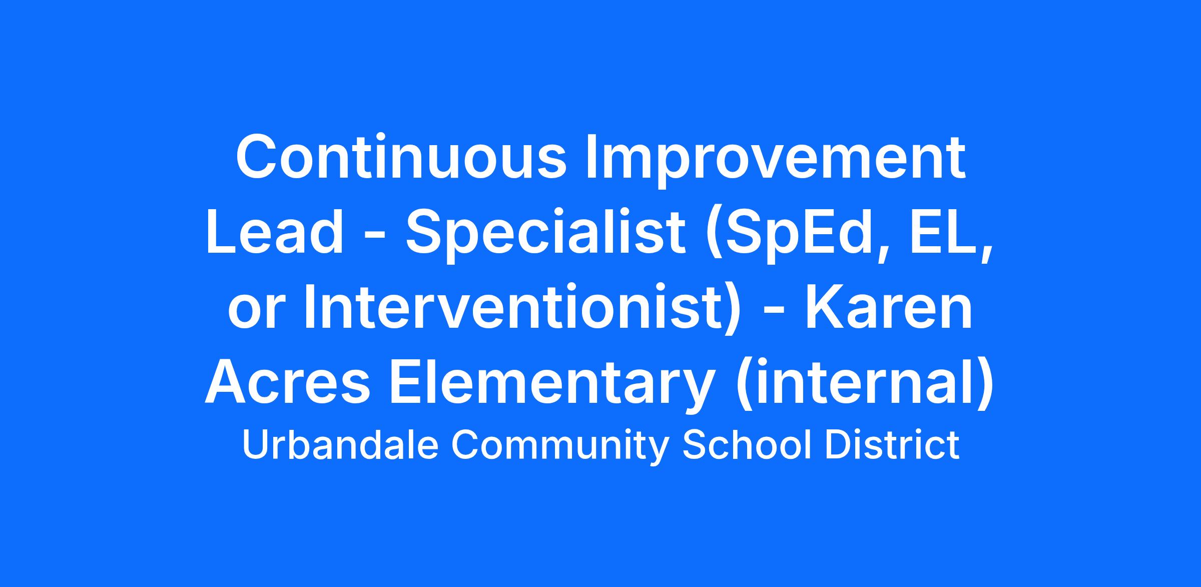 Position Title: Continuous Improvement Lead