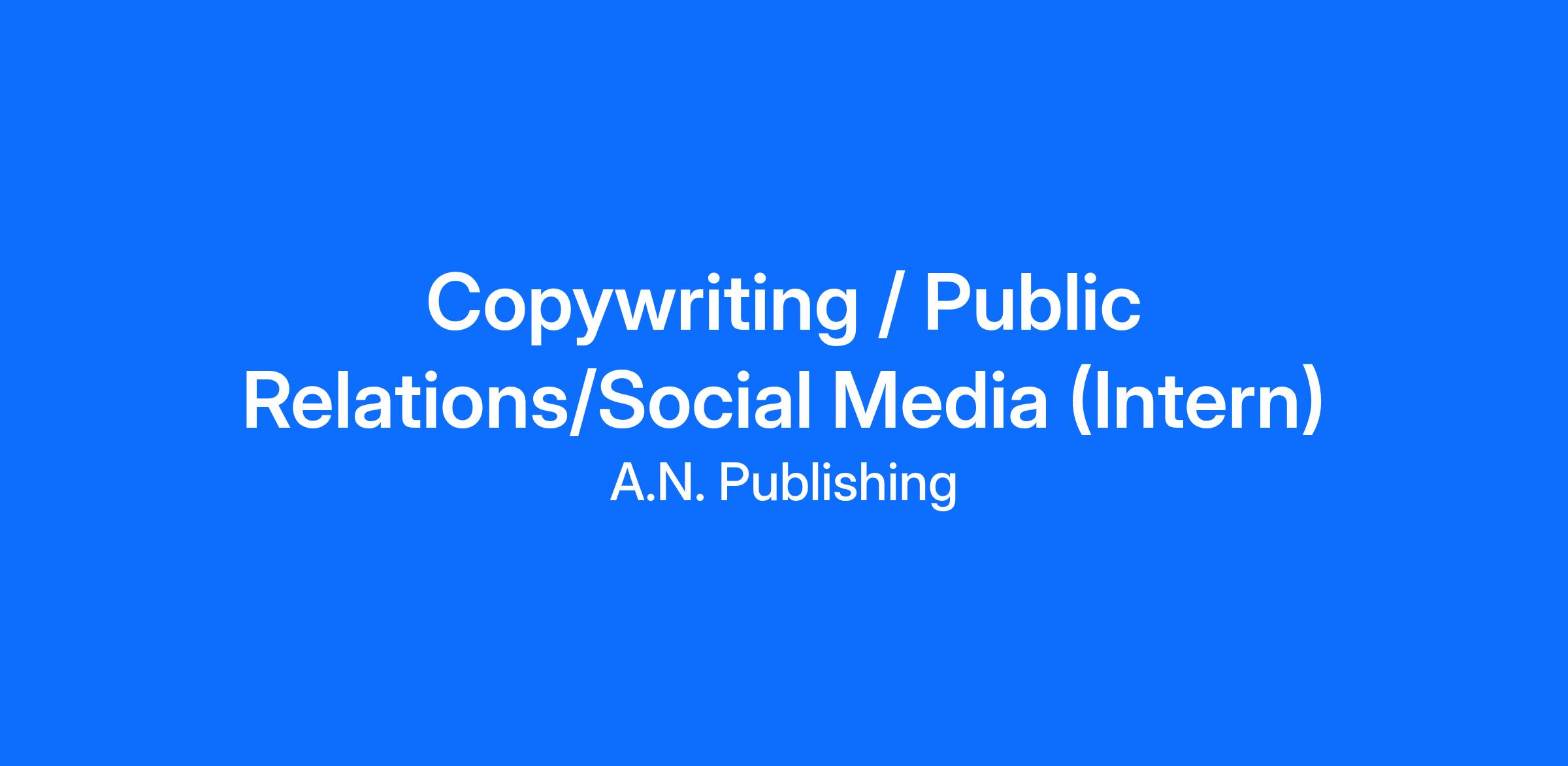 The Public Relations /Copywriting/Social Media intern will be instrumental in building digital brand awareness through marketing materials and developing and engaging clients for the A. N. Publishing brands.