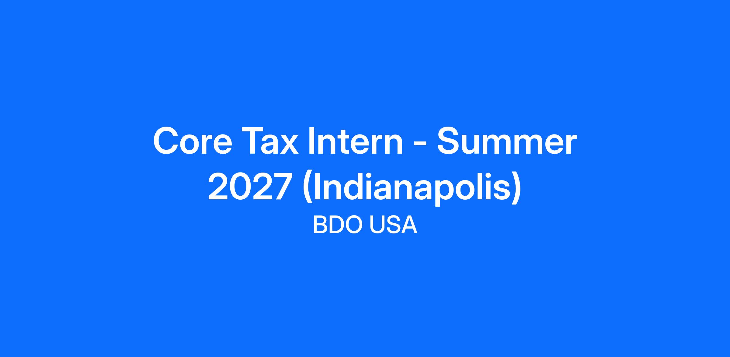 Core Tax Intern - Summer 2027 (Indianapolis)