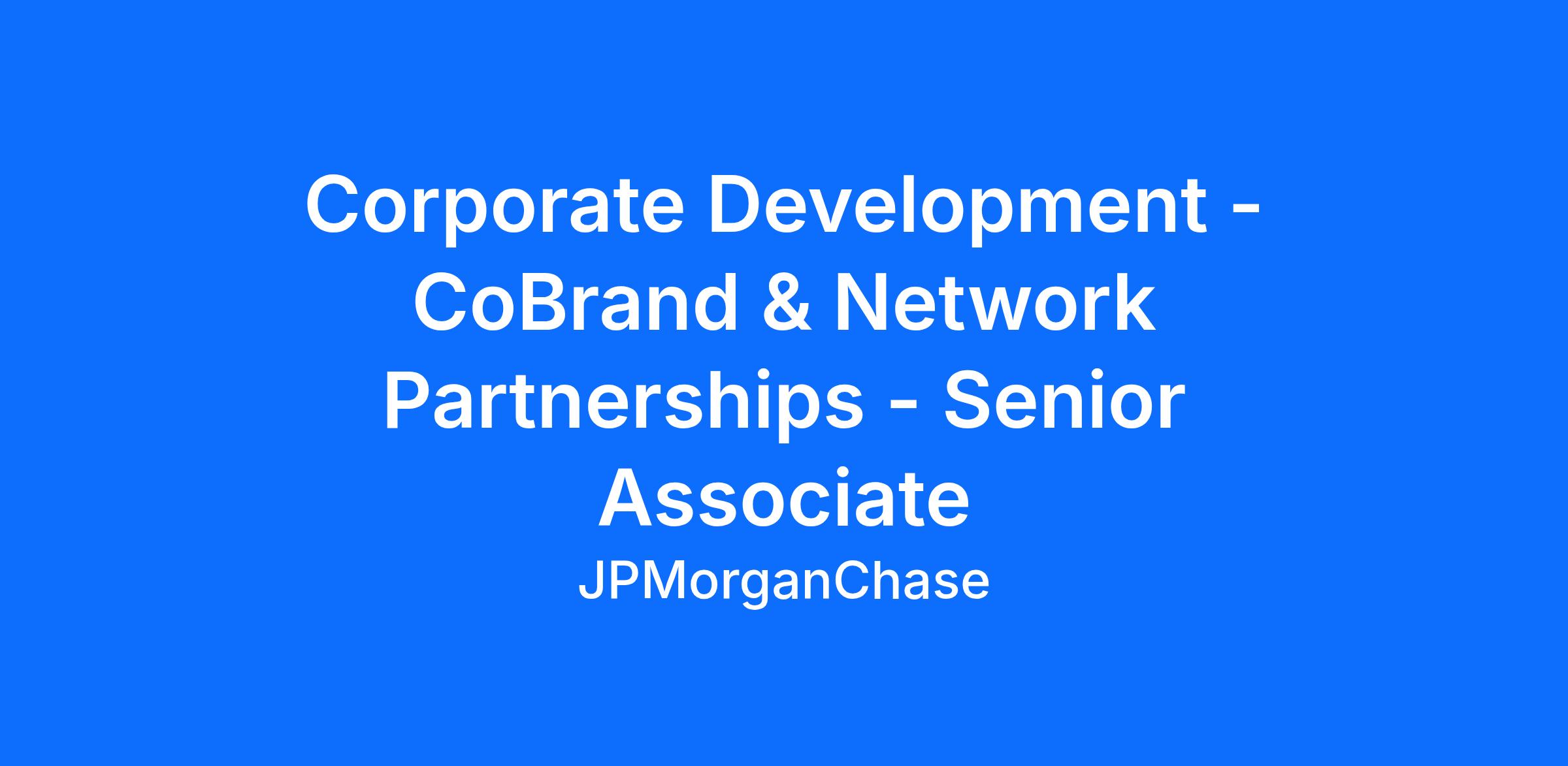 DescriptionThe Corporate Development team at Chase is responsible for the partnerships and strategies at the heart of the most important business decisions across the consumer franchise. Within Corporate Development, the Co-brand and Network Partnerships team is responsible for end-to-end negotiations with existing partners like Amazon, Disney, United, Marriott, and Southwest, as well as future prospects, and the major payment networks, Visa and Mastercard. JP Morgan Chase is the number one U.S. credit card issuer and has been in the cobrand partnership business for approximately 40 years with partners who are leaders in their respective categories. In this role you will have the exciting opportunity to contribute to important partnerships and strategies across the consumer franchise.