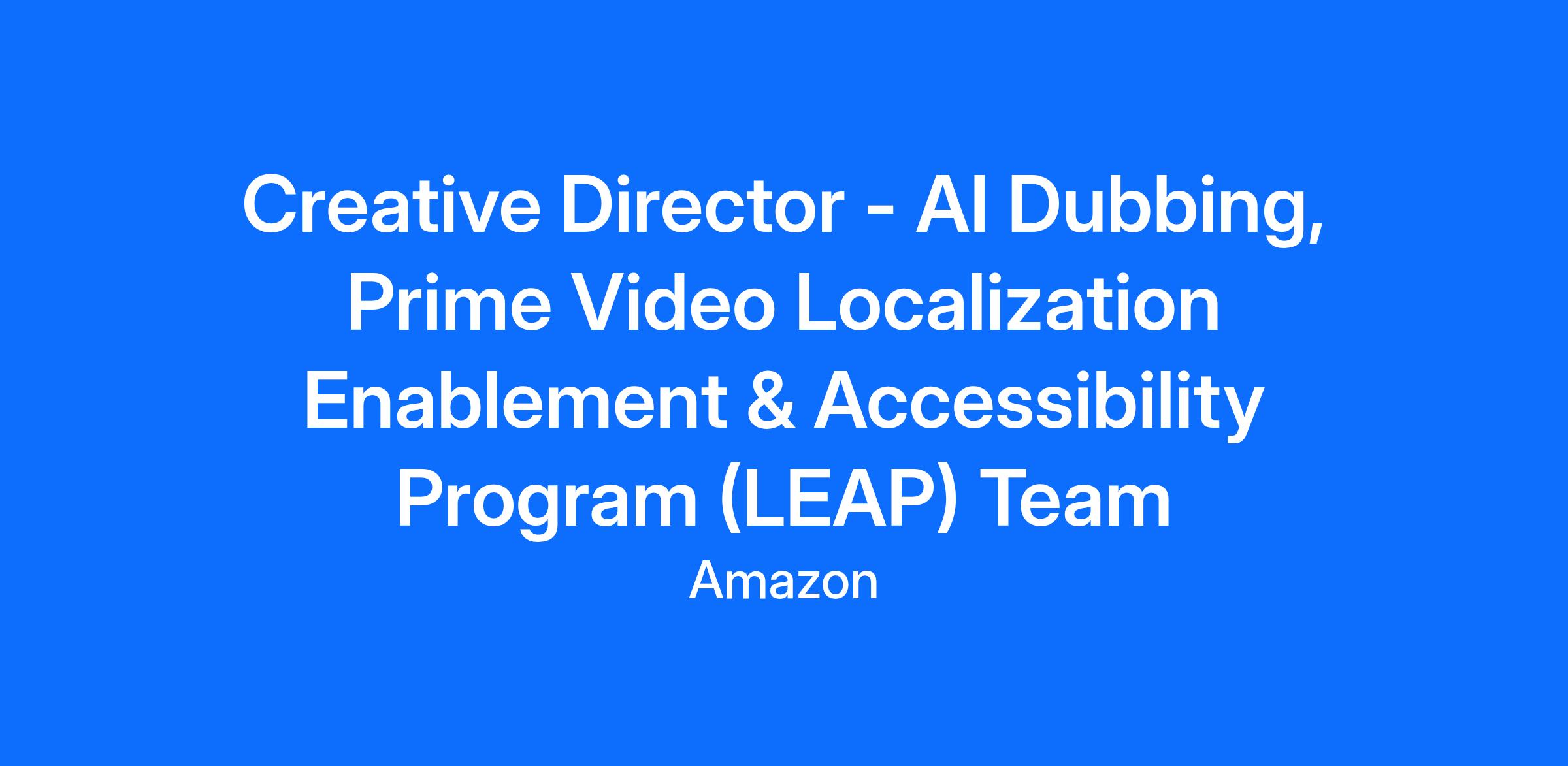 The Prime Video Localization Enablement & Accessibility Program (LEAP) team is seeking an innovative Creative Director to spearhead the creative vision for its AI-enabled dubbing platform. In this pivotal role, you will define the artistic and emotional standards for AI-enabled dubbing solutions, ensuring seamless integration of technology with human creativity to deliver globally accessible, culturally resonant content. You will lead the development of hybrid workflows that blend AI efficiency with artistic and culturally-relevant refinement, oversee quality and ethical guidelines, and drive global expansion of AI-enabled dubbing capabilities. This position requires a proven leader with deep expertise in creative direction, cross-cultural storytelling, and AI-media innovation, ready to set new industry benchmarks for immersive, emotionally authentic international storytelling at scale.