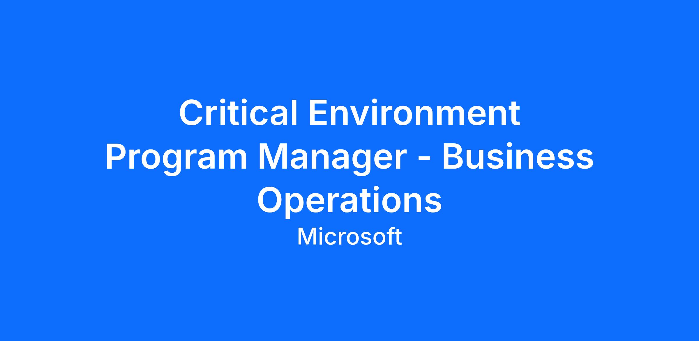 OverviewMicrosoft’s Cloud Operations & Innovation (CO+I) is the engine that powers our cloud services. As a CO+I Critical Environment Program Manager - Business Operations, you will perform a key role in delivering the core infrastructure and foundational technologies for Microsoft's online services including Bing, Office 365, Xbox, OneDrive, and the Microsoft Azure platform.