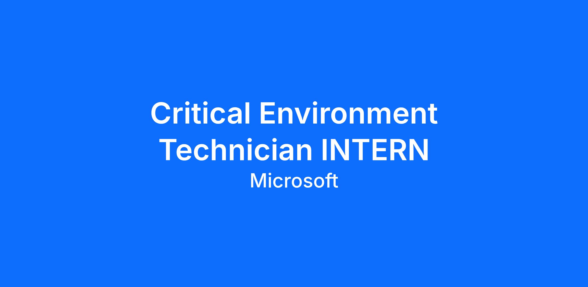 OverviewMicrosoft’s Cloud Infrastructure and Operations (MCIO) is the engine that powers our cloud services. As a Critical Environment Technician INTERN, you will perform a key role in delivering the core infrastructure and foundational technologies for Microsoft's over 200 online businesses including Bing, Office 365, Xbox, OneDrive and the Microsoft Azure platform.