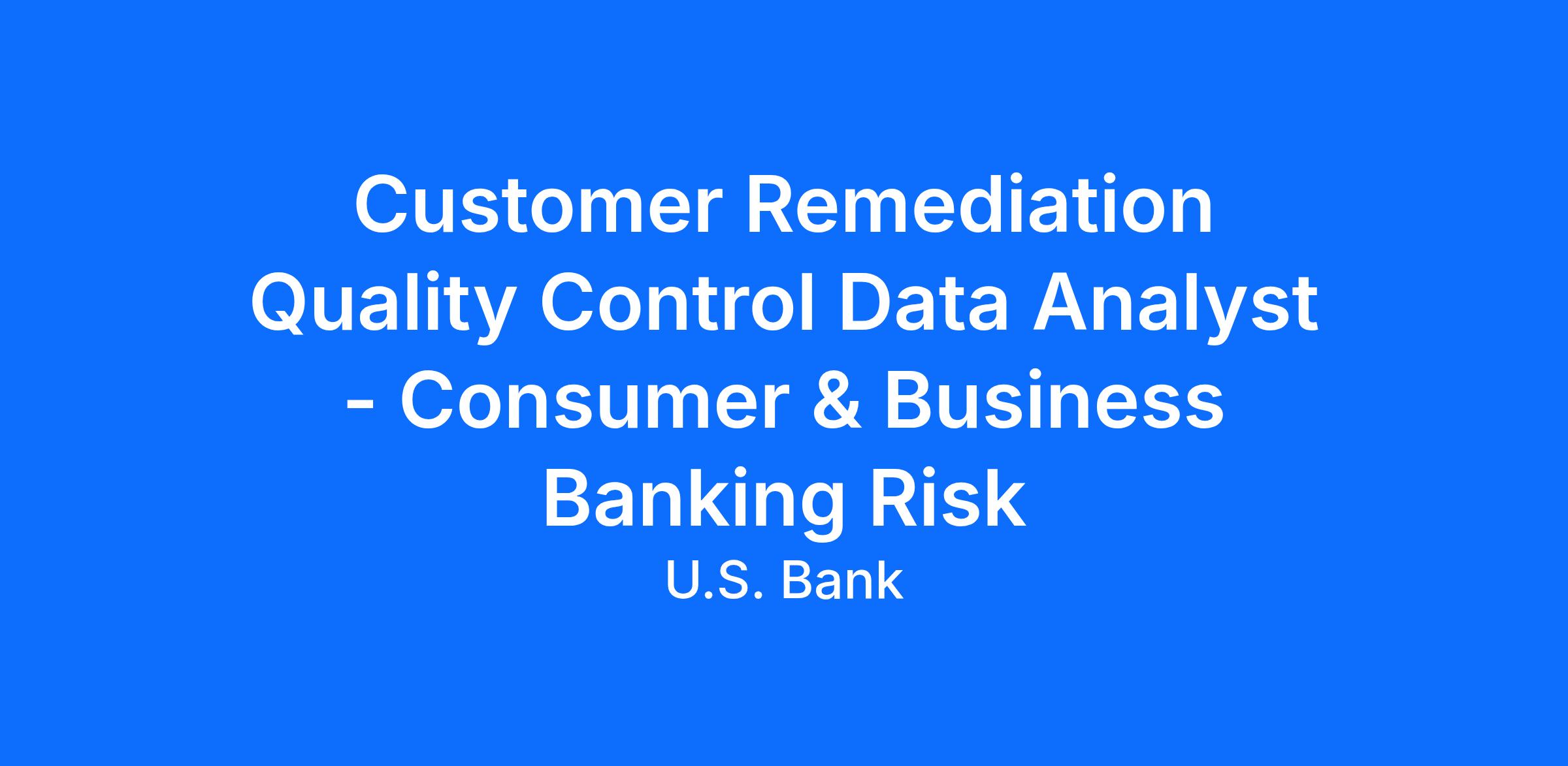 - Customer Remediation Support: The CBB Risk Data Team supports issue and business line management with research, data analysis, documentation and execution
