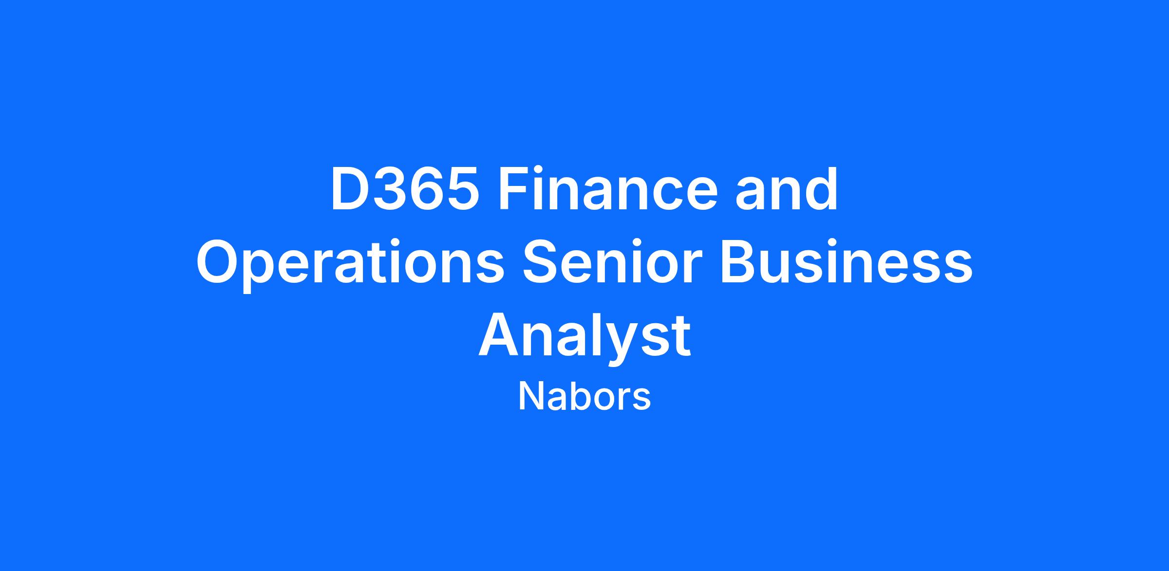 The role involves participating in and leading implementation activities for Microsoft Dynamics 365 Finance & Operations across the USA and other international regions. The position also ensures alignment with Nabors existing business processes, system configurations, and operational standards within the D365 F&O environment.