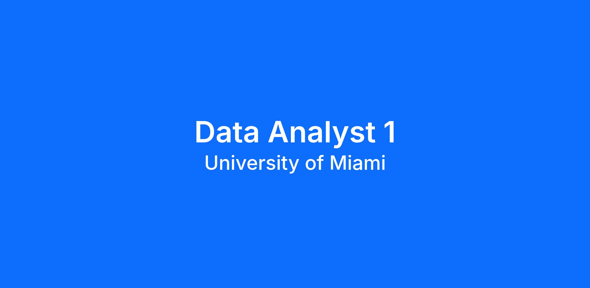 The University of Miami/UHealth Department of Public Health has an exciting opportunity for a full time Data Analyst 1 to work in Miami, FL.