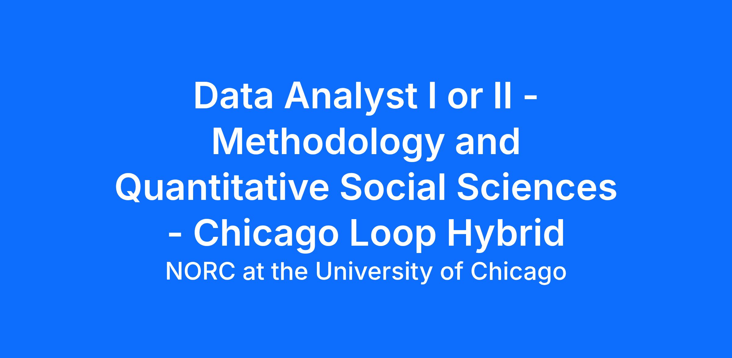 NORC at the University of Chicago is seeking a qualified Data Analyst I or II (we are open to hiring at either level) to join the Methodology and Quantitative Social Sciences department and support a diverse range of research projects. At NORC, Data Analysts are early career team members who train and work with our Data Scientists and Research Methodologists to perform tasks including importing, cleaning, standardizing, transforming, and validating data sets. Data Analysts also research and document data procedures and support the investigation of data problems. They may identify, analyze, and interpret trends or patterns in data sets, support modeling efforts, and help prepare data presentations and reports, including developing charts, graphs, and tables. In addition, the Data Analyst may assist in data collection and harmonization from primary or secondary data sources (e.g., administrative records, commercial data, social media data), preparing data files for delivery, and the maintenance of databases, data systems, and their relevant metadata/dictionaries. The Data Analyst is expected to work collaboratively in a team environment. Qualified applicants must be eligible to work in the U.S now and in the future. We regret that we are unable to offer visa sponsorship for this position. Location: This is a hybrid role based in our Chicago Loop office, with a minimum of six days per month in the office. |