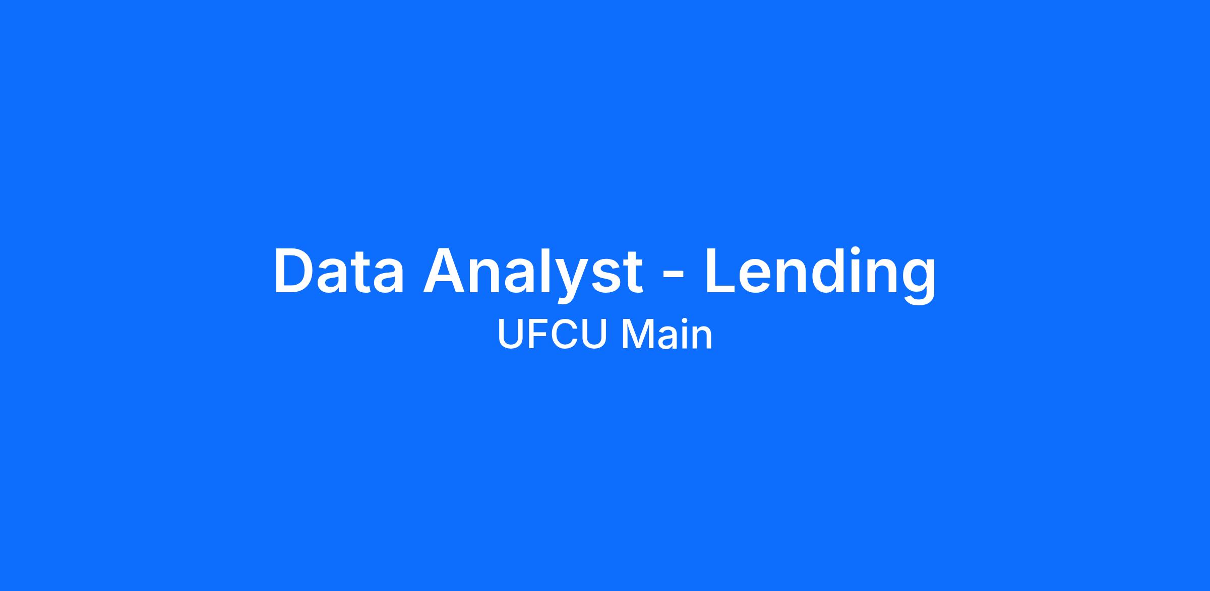 The Data Analyst – Lending supports the development, management, and performance optimization of UFCU’s Lending functions. This role is responsible for analyzing performance, identifying growth opportunities, evaluating member behavior, and delivering insights that inform enterprise lending strategy and operational improvements. The Data Analyst partners closely with the Lending management team, Technology, Finance, Risk, MarCom, and Retail Experience teams to enhance performance, improve member outcomes, and support strategic initiatives.