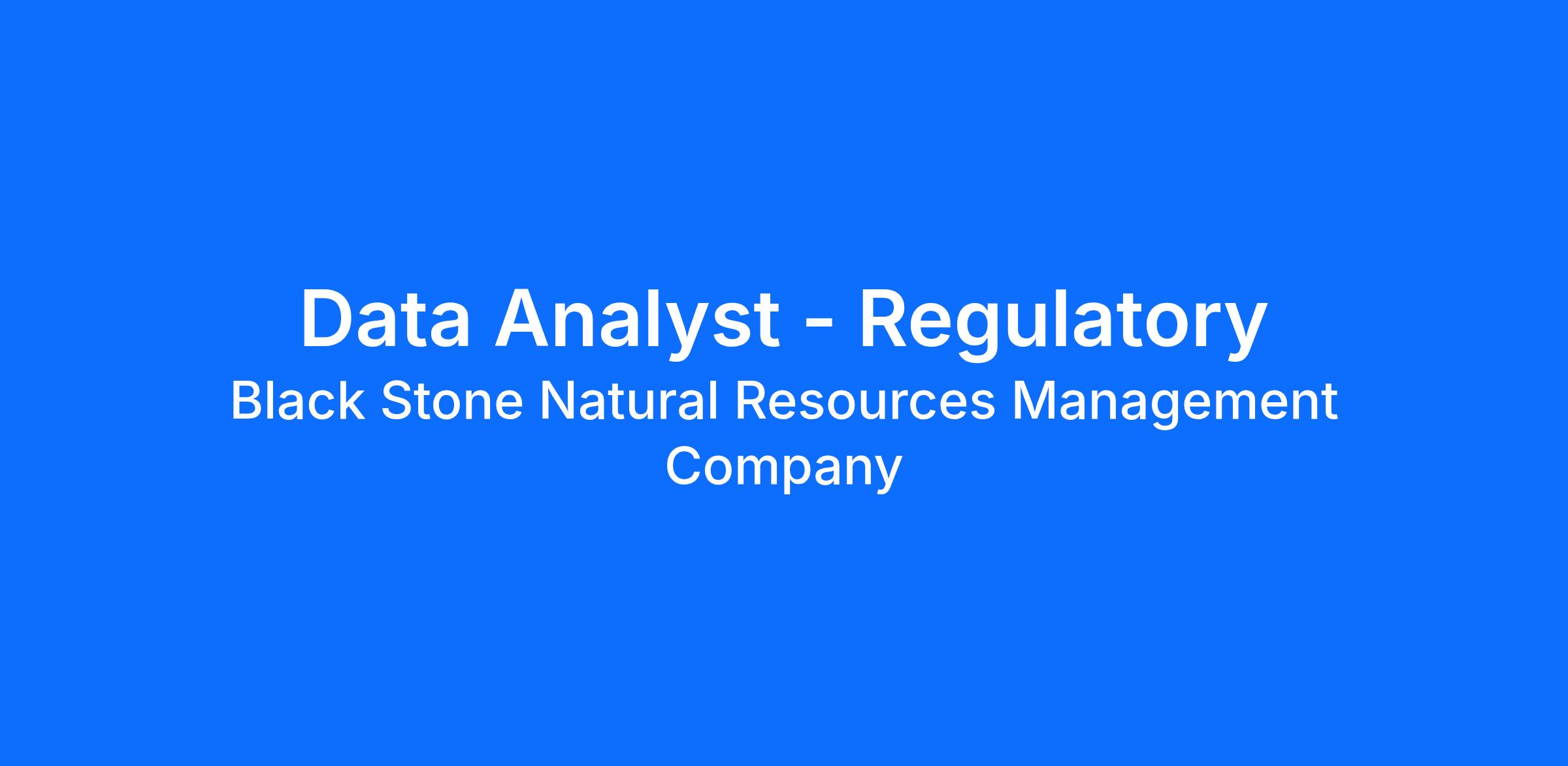 The Data Analyst, Regulatory position at Black Stone is responsible for assisting in maintaining Corporate Well Surveillance. Working under the direction of the Manager, Data Analytics, this role requires an ability to work independently and collaboratively while maintaining daily workload. This is an excellent opportunity to be exposed to all major U.S. plays and O&G producing states within the Regulatory Compliance space, with a focus on Non-Op property stance.