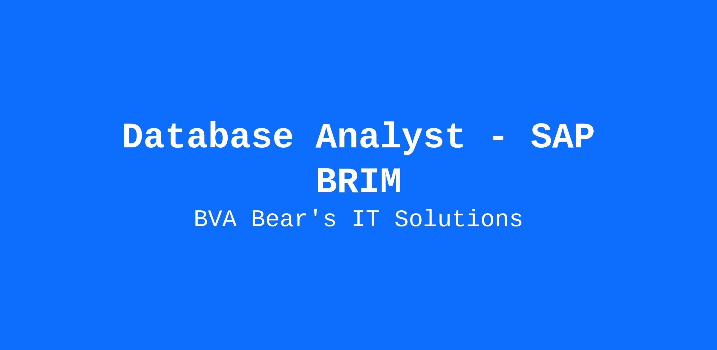 BVA Bears IT Solutions is seeking an SAP BRIM -Database Analyst to work in the Middletown, PA area. This is a full time position with at least 2 days on-site and