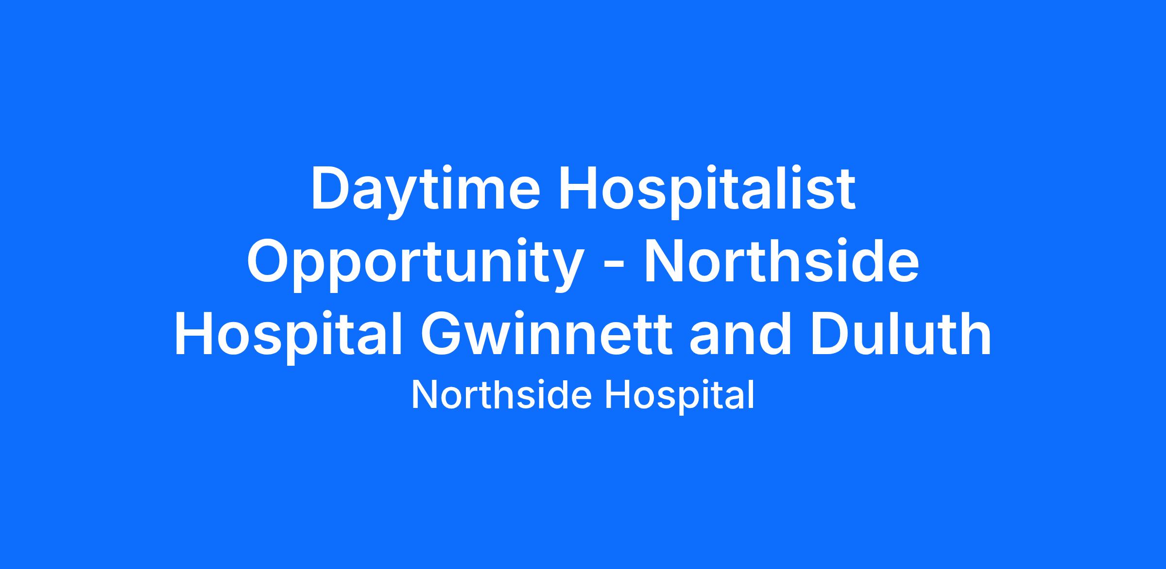 Northside Hospital is seeking Hospitalists for their growing Northside Gwinnett and Duluth campuses.