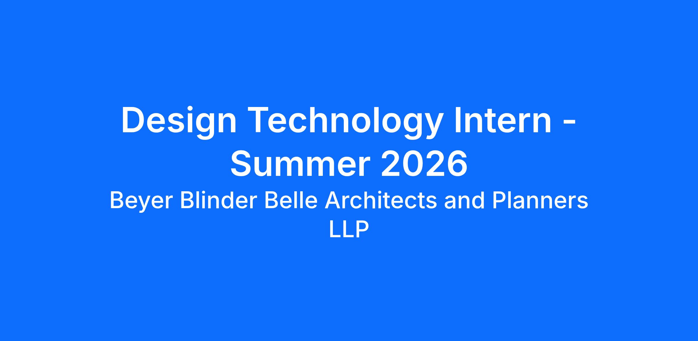Beyer Blinder Belle is accepting Summer 2026 intern applications and seeks talented design students with an emphasis on design technology and software to join our New York City office. The intern will undertake various assignments related to the development of office standards and technical infrastructure, including, but not limited to, applying standard design processes, contributing to the development of technical solutions, assisting in creating bespoke scripting and automation deployments, conducting technical research, and developing standardized BIM assets.