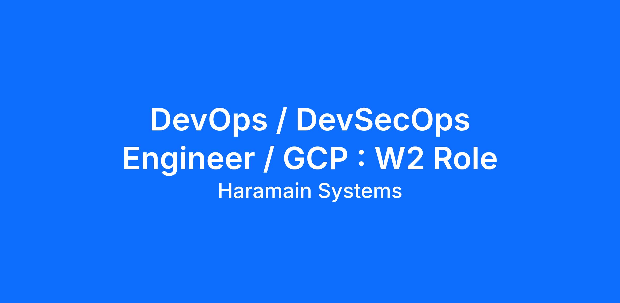 DevOps / DevSecOps Engineer / GCP : W2 Role