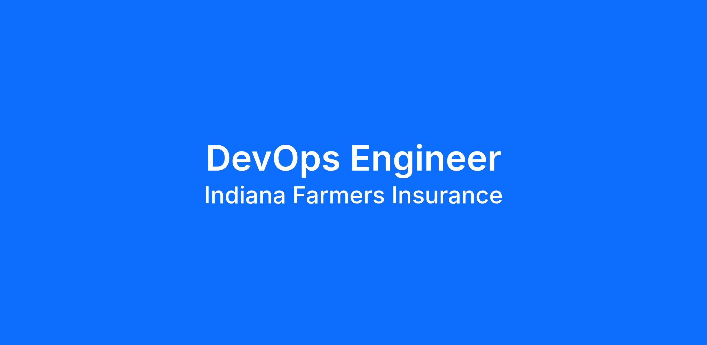 Indiana Farmers Insurance is currently looking for a DevOps Engineer to join our Information Technology team. The ideal candidate will be located in Indiana, Illinois, Ohio, Kentucky, or Michigan, but we may consider other work locations.