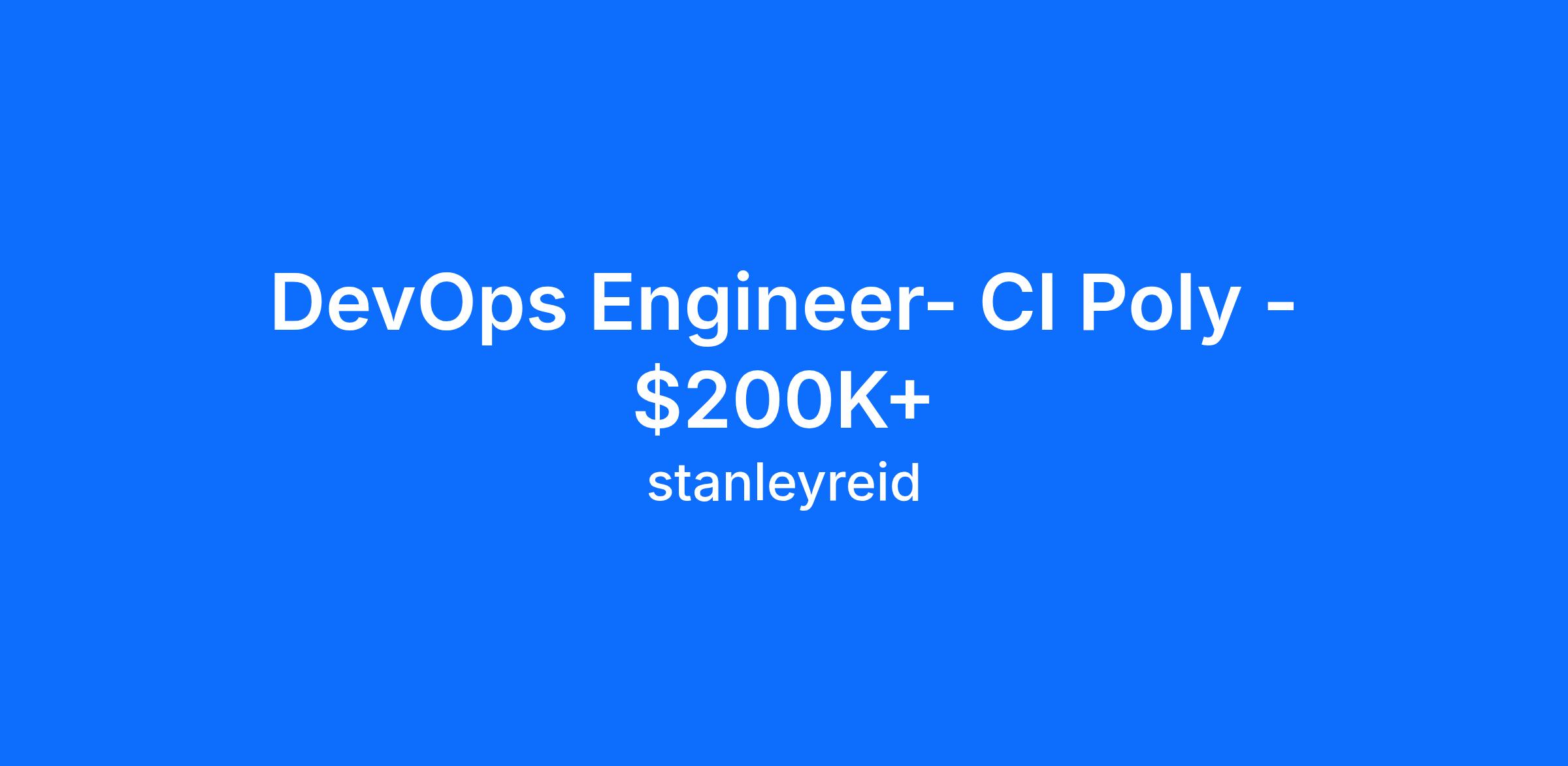 DevOps Engineer- CI Poly - $200K+