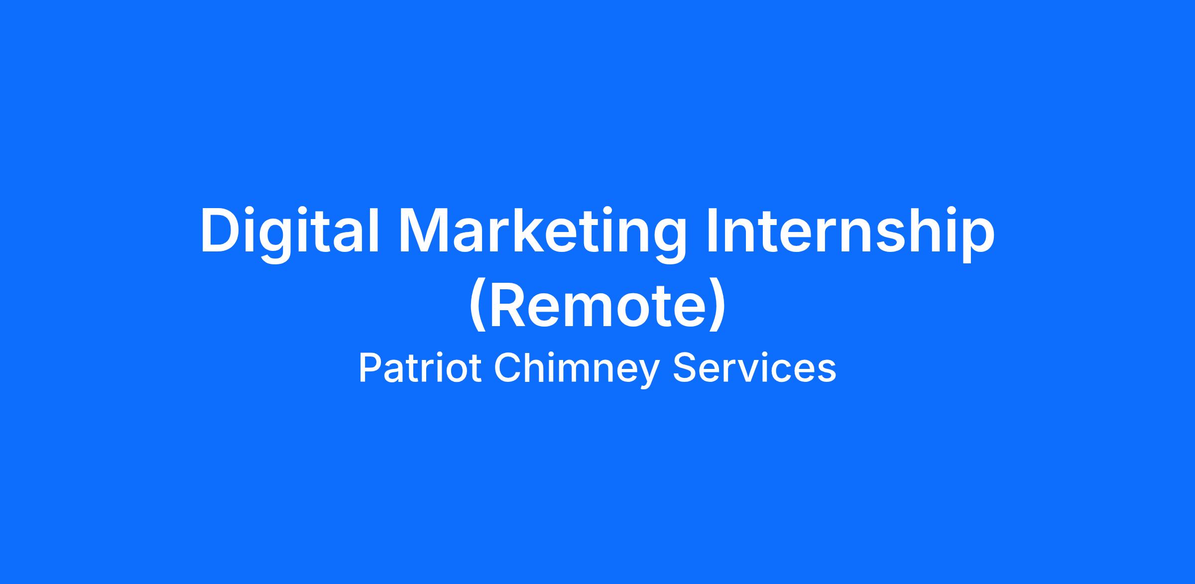 Hi! Thanks for your interest in working with us. The digital marketing intern will play an active role in developing the Patriot Chimney community. Patriot Chimney is a young, forward-thinking company looking to hire an intern with a desire to work in the digital marketing field upon graduation.