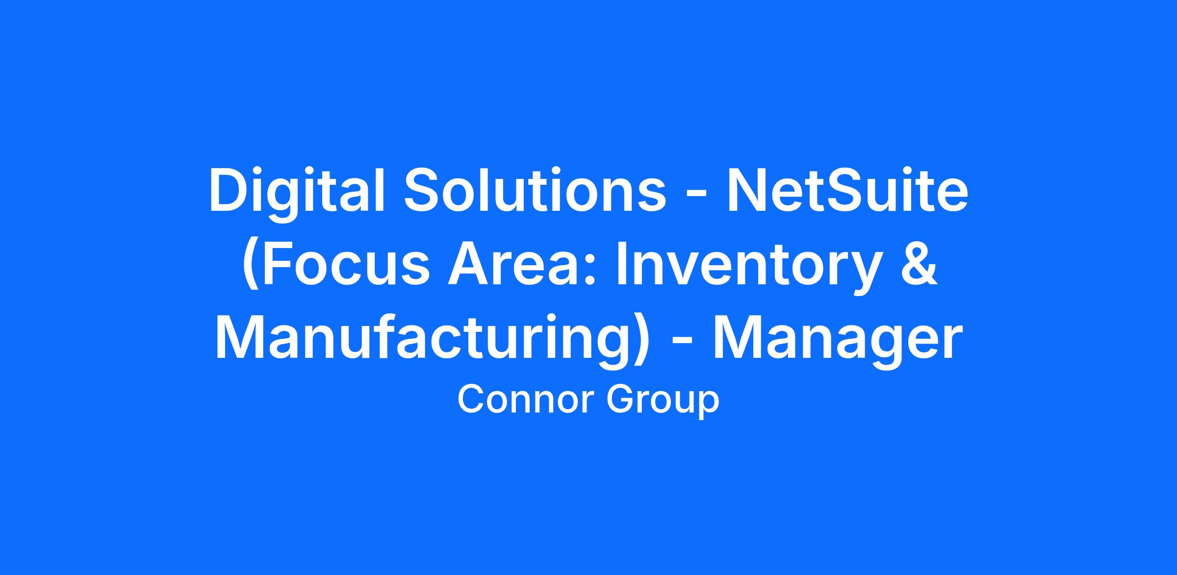Digital Solutions - NetSuite (Focus Area: Inventory & Manufacturing) - Manager