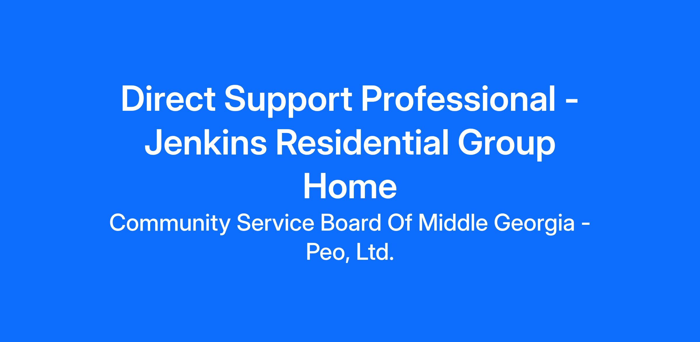 The Community Service Board of Middle Georgia's Jenkins Residential Group Home is seeking a qualified individual to serve as our next Direct Support Professional. This person will be responsible for providing care and assistance to adults with diagnosed intellectual and developmental disabilities, ensuring that they have the proper care needed throughout the day and in everyday activities. The selected candidate will also be responsible for keeping up to date progress notes on the individuals they work with, to ensure that the program manager has the proper knowledge to advise families and senior leadership on necessary next steps.