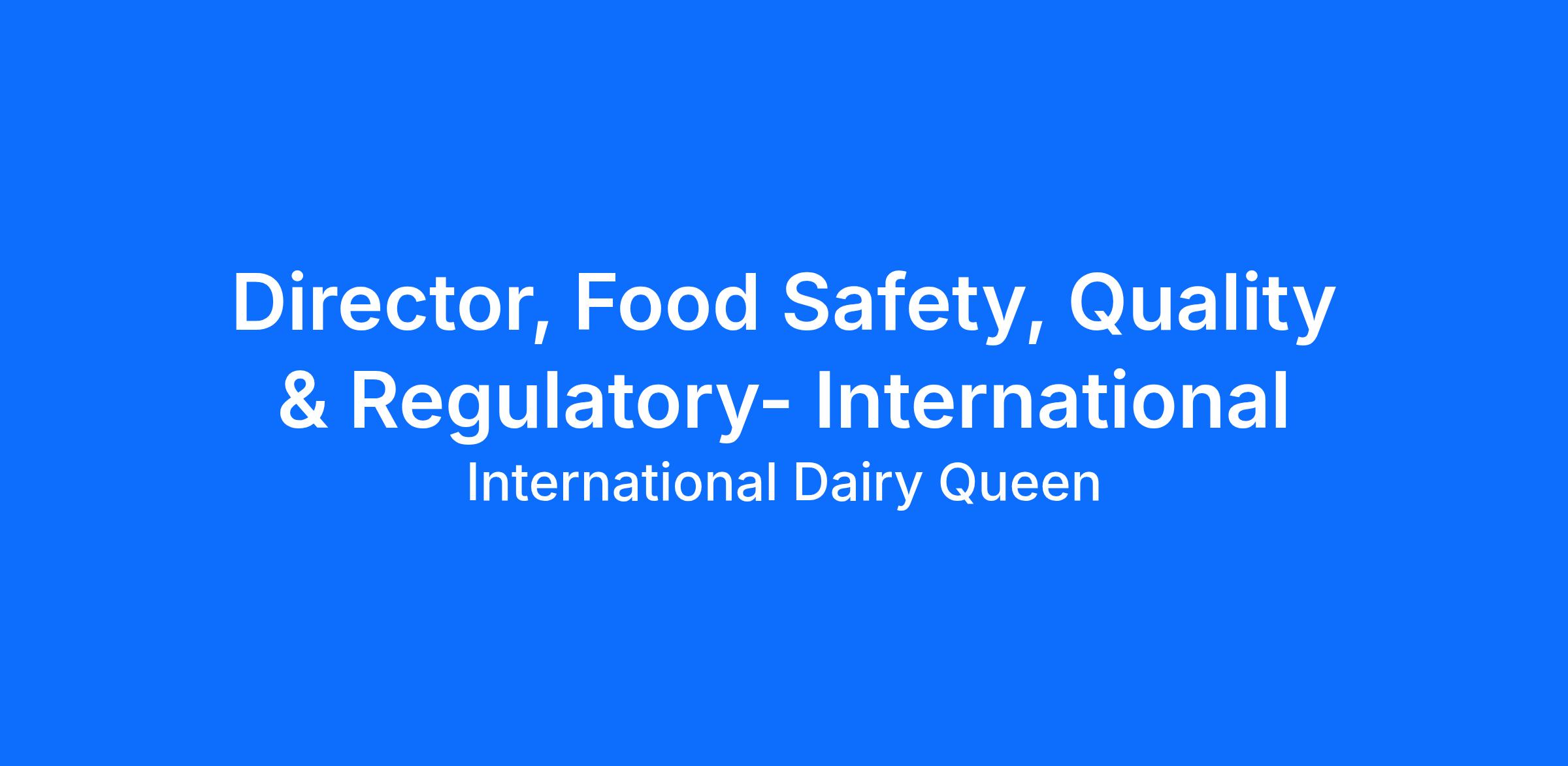 We have an exciting opportunity available for a Director, Food Safety, Quality & Regulatory supporting our international regions working hybrid out of our corporate office in Bloomington, MN. This position provides international strategic leadership and direction within the Food, Safety, Quality and Regulatory team. While it has a significant number of within-department responsibilities, it also works with cross-functional teams to deliver high quality and safe products to restaurants, ensure regulatory compliance, and lead select corporate responsibility initiatives.