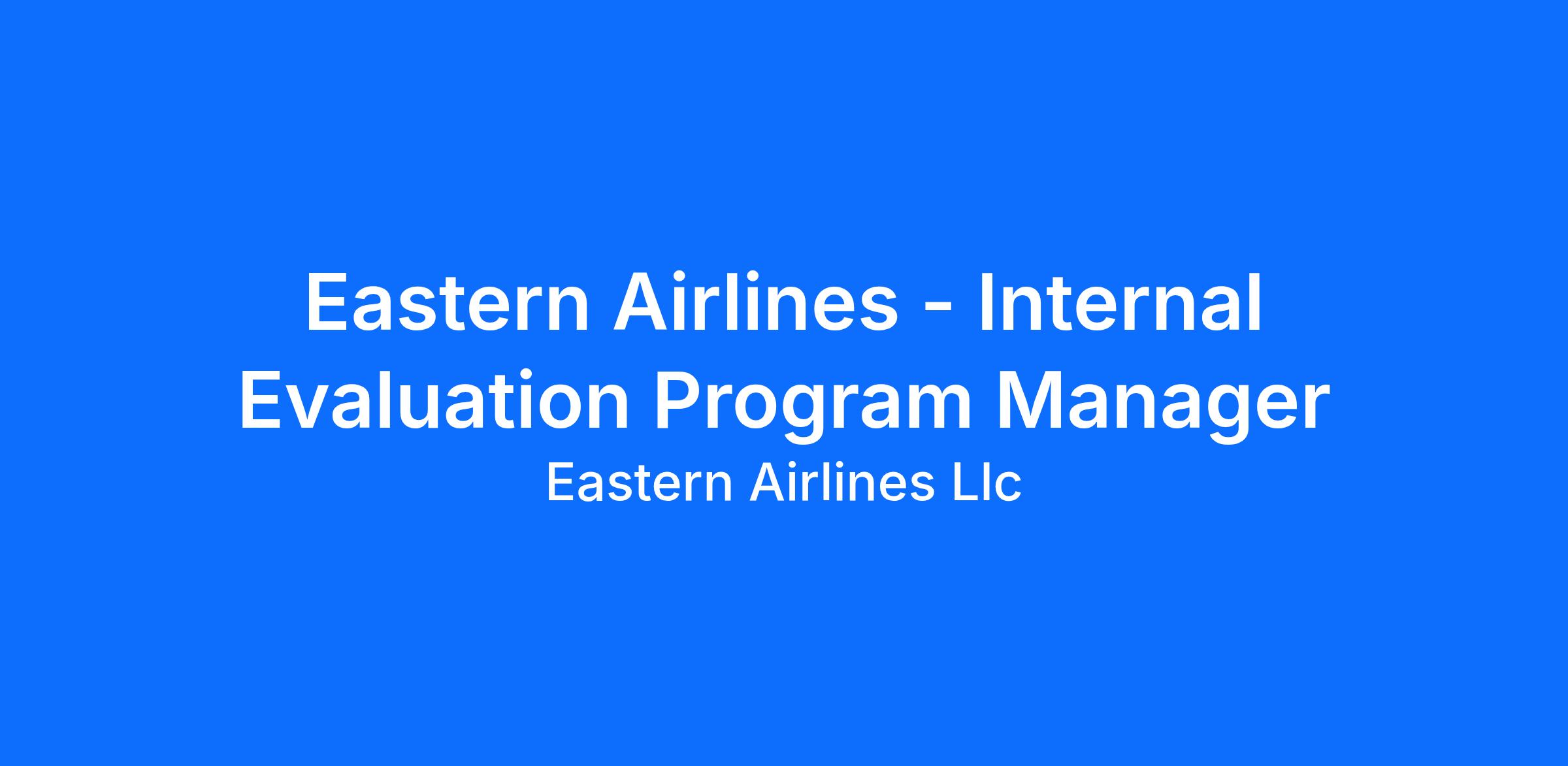 This is a full-time, FLSA exempt position that reports to the Director of Safety. The Manager of Internal Evaluation (MIE) has overall responsibility, as part of the Company’s Safety department, for the day-to-day management of the Safety Internal Evaluation Program (IEP). This person will serve as the chairman of the IEP board. The Manager of Internal Evaluation is an important position which ensures all Eastern Airlines personnel promote safety and regulatory compliance for all Eastern Airlines operations. s.