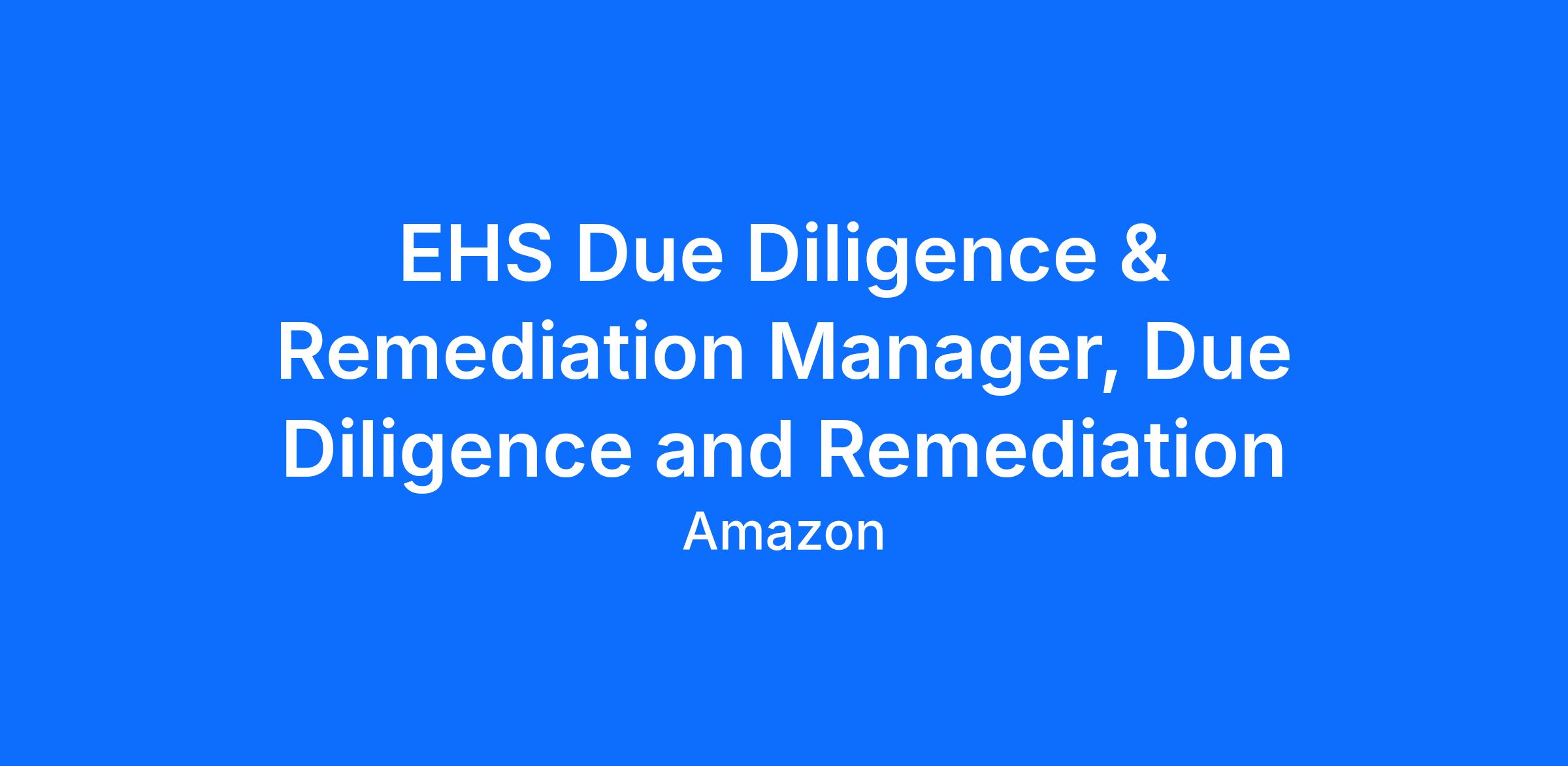As a Workplace Health & Safety Real Estate Due Diligence & Remediation Manager, you will be responsible for partnering with various stakeholders and teams to support real estate transactions. You will perform transaction related due diligence, scope and manage remediation projects, develop Amazon standards and policy, and implement and execute the requirements of the program. In this role, you will assist in managing these programs at the corporate level and ensure that risks and liabilities are appropriately evaluated and mitigated as a part of our transactions.