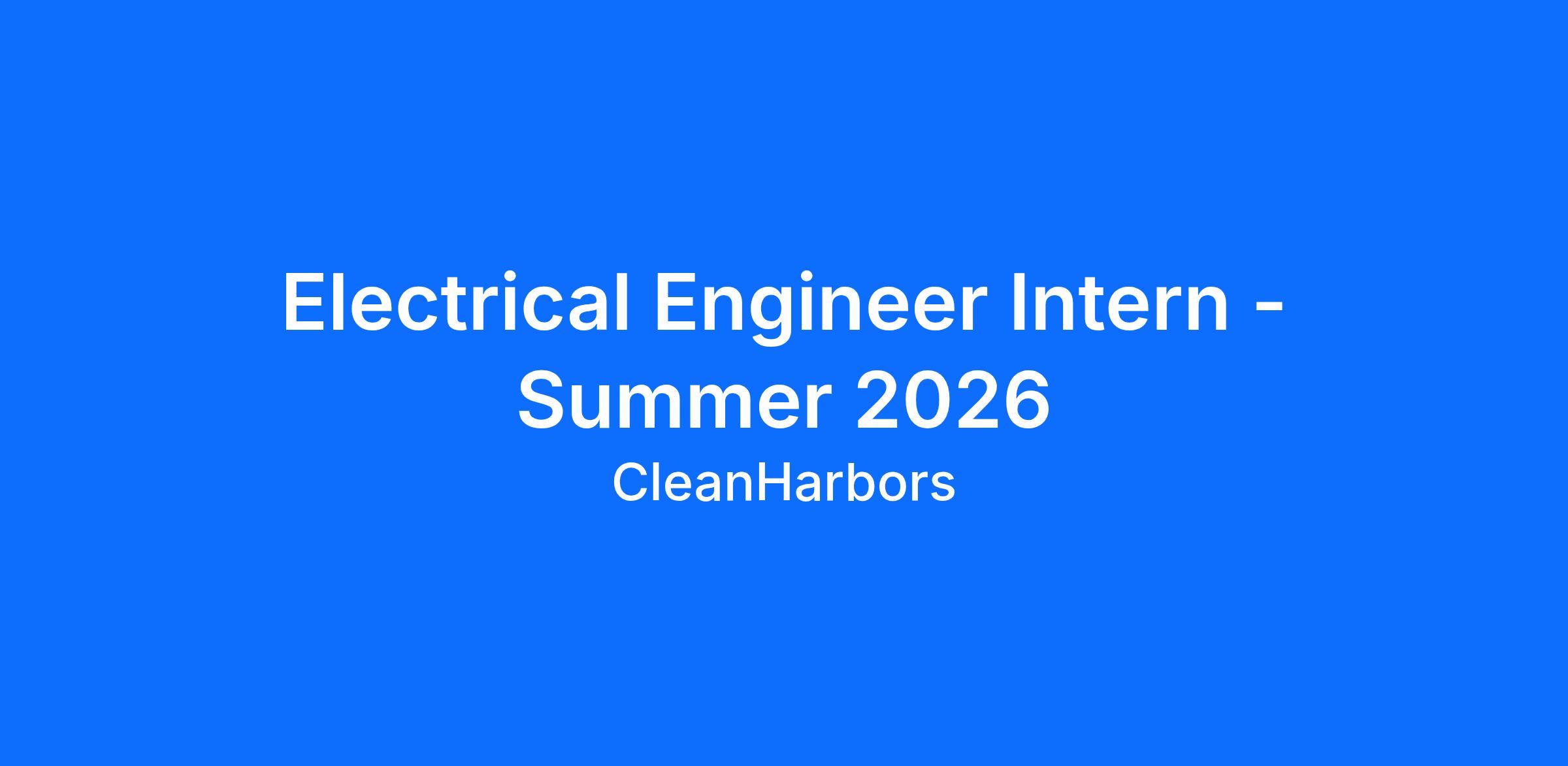 Clean Harbors Deer Park is seeking an Electrical Engineer Intern to join our safety-focused team. This internship provides students with the opportunity to gain hands-on experience while supporting real projects that contribute to business priorities across our environmental, energy, and industrial services operations.