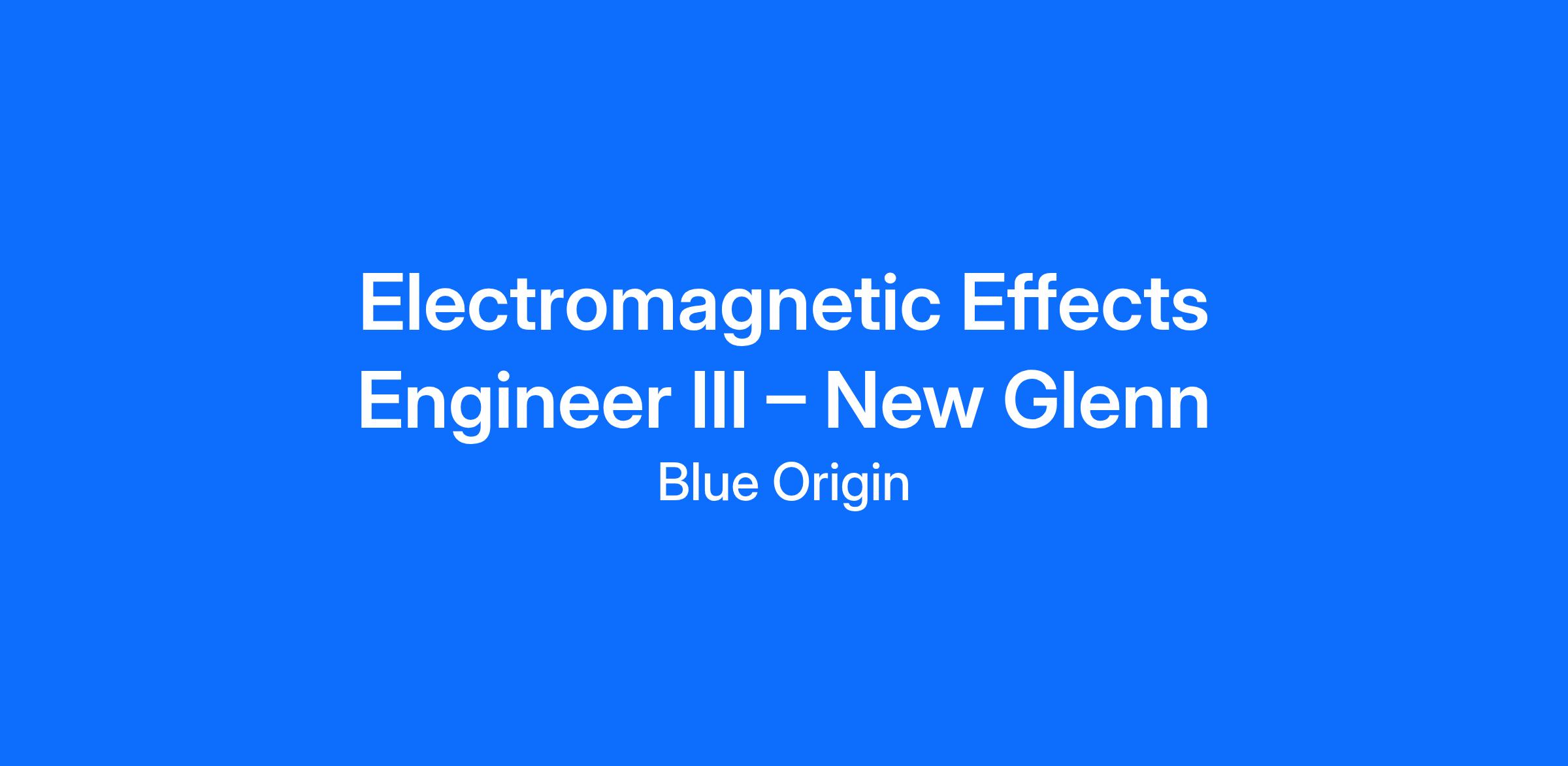 This role supports the development and operations of New Glenn, a single-configuration, heavy-lift orbital launch vehicle capable of routinely carrying people and payloads to low-Earth orbit, geostationary transfer orbit, cislunar, and beyond. Its first stage is fully reusable, and the vehicle was designed from the beginning to be human-capable.As part of a small, passionate and accomplished team of experts you will be responsible for the top-level EMC, lightning, and RF integration and architecture for electrical and electronic systems on New Glenn. You will be responsible for defining and documenting the EME requirements for New Glenn electrical systems and components. You will lead design trades for system approaches for EMC, RF, static, and lightning tolerance. You will be responsible for developing verification strategies for electrical system design requirements for electromagnetic effects (EME) tolerance. We are looking for someone to apply their technical expertise, leadership skills, and commitment to quality to positively impact safe human spaceflight. Passion for our mission and vision is required!