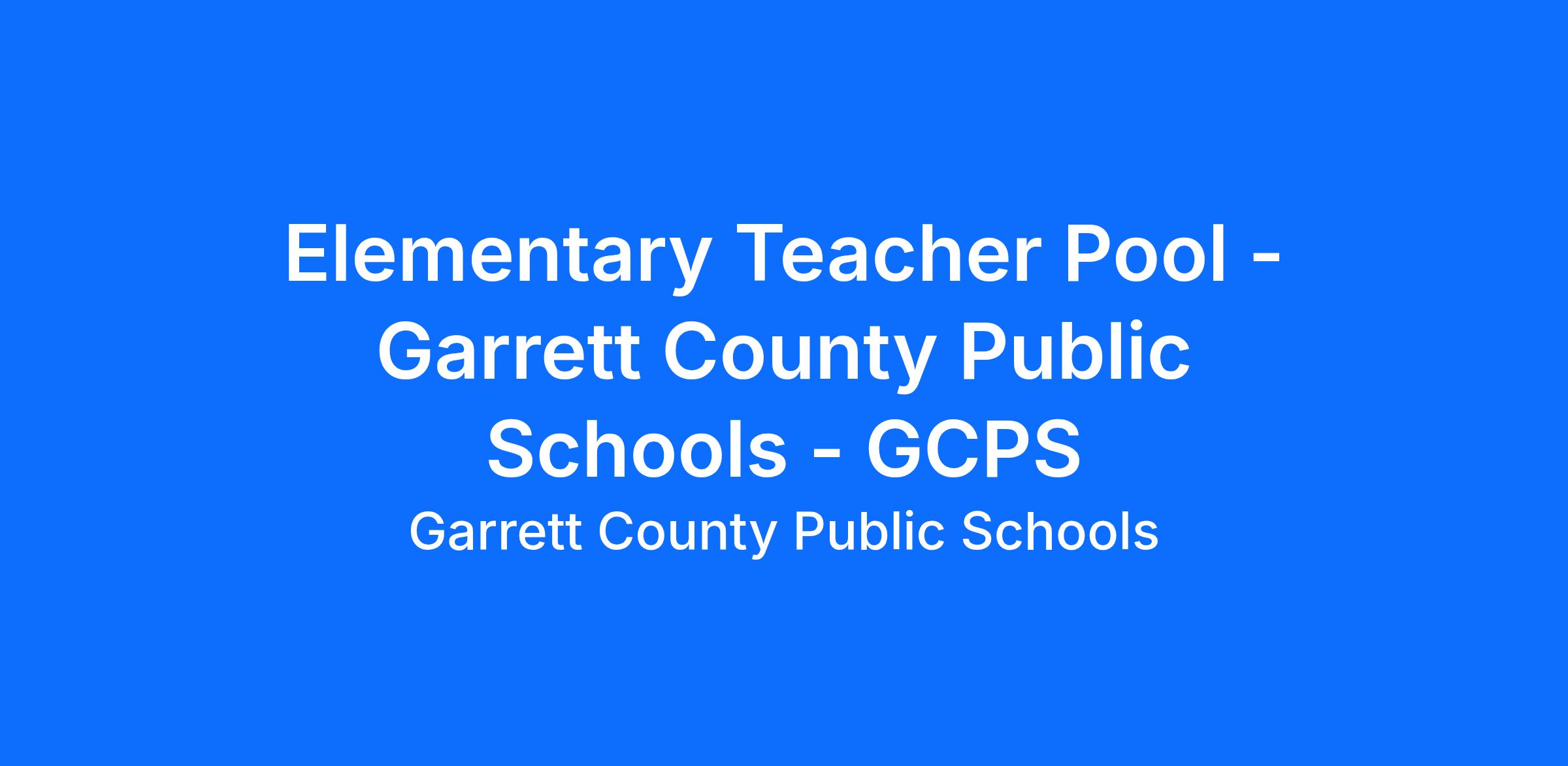 Elementary Teacher Pool - Garrett County Public Schools