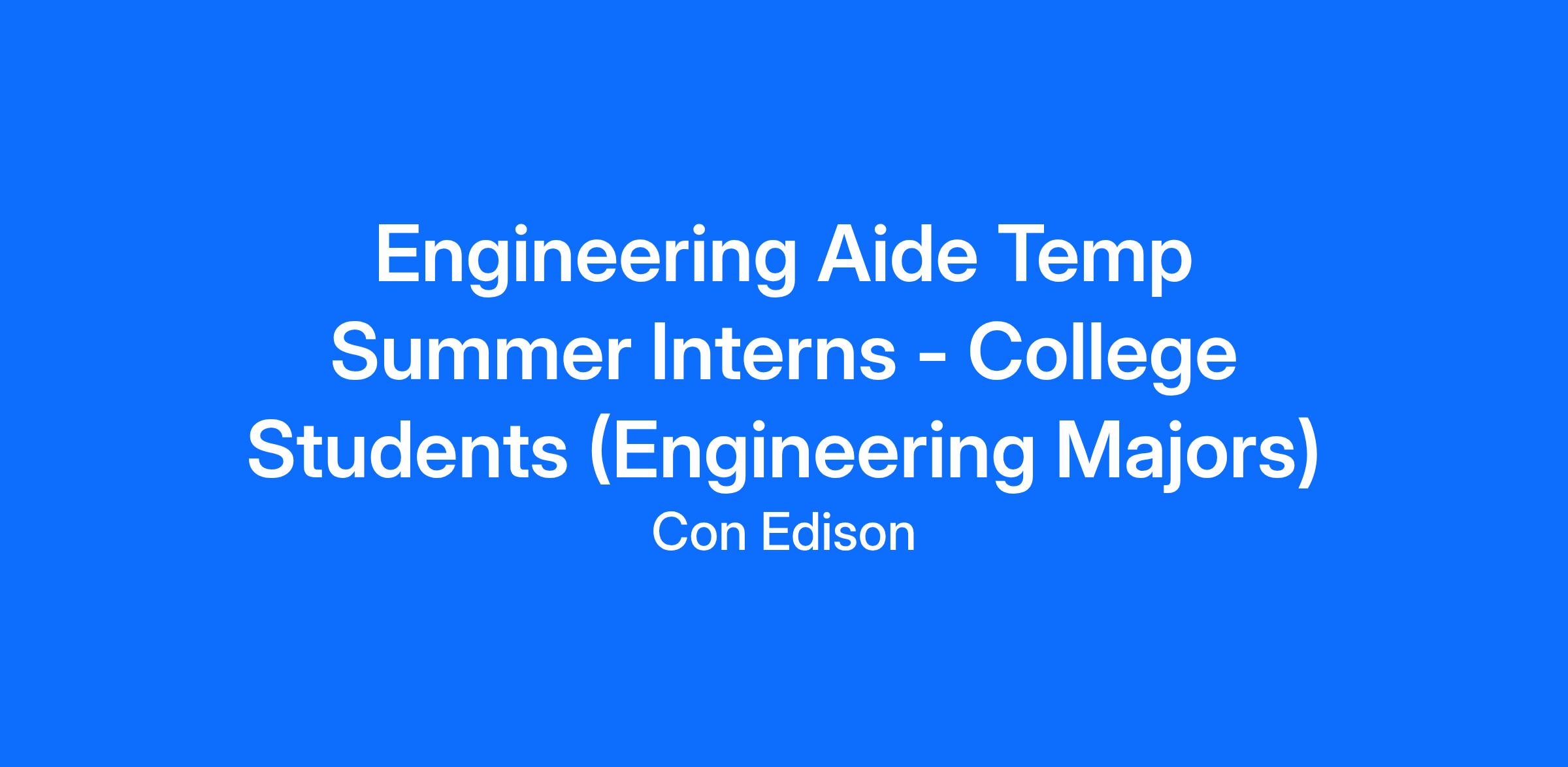 - The Con Edison Summer Internship program is a 10 - 12-week paid opportunity to gain hands-on experience with meaningful work, while developing your skills, and building your network. The internship has an estimated start date of May/June 2026 and an estimated end date of August/September 2026. Internships are offered across our service territories (Brooklyn, Bronx, Manhattan, Staten Island, Queens, and Westchester) and placements will be based on best fit for the business needs. As an Engineering Aide, you will be responsible for assisting technicians and engineers that support safe, reliable, and cost-effective energy delivery to our customers across our electric, gas, and steam commodities. Your assignment may include providing administrative support, project management support, data collection and analysis, procedure reviews, design scoping and development support, work management oversight, or other operational support depending on the business needs.