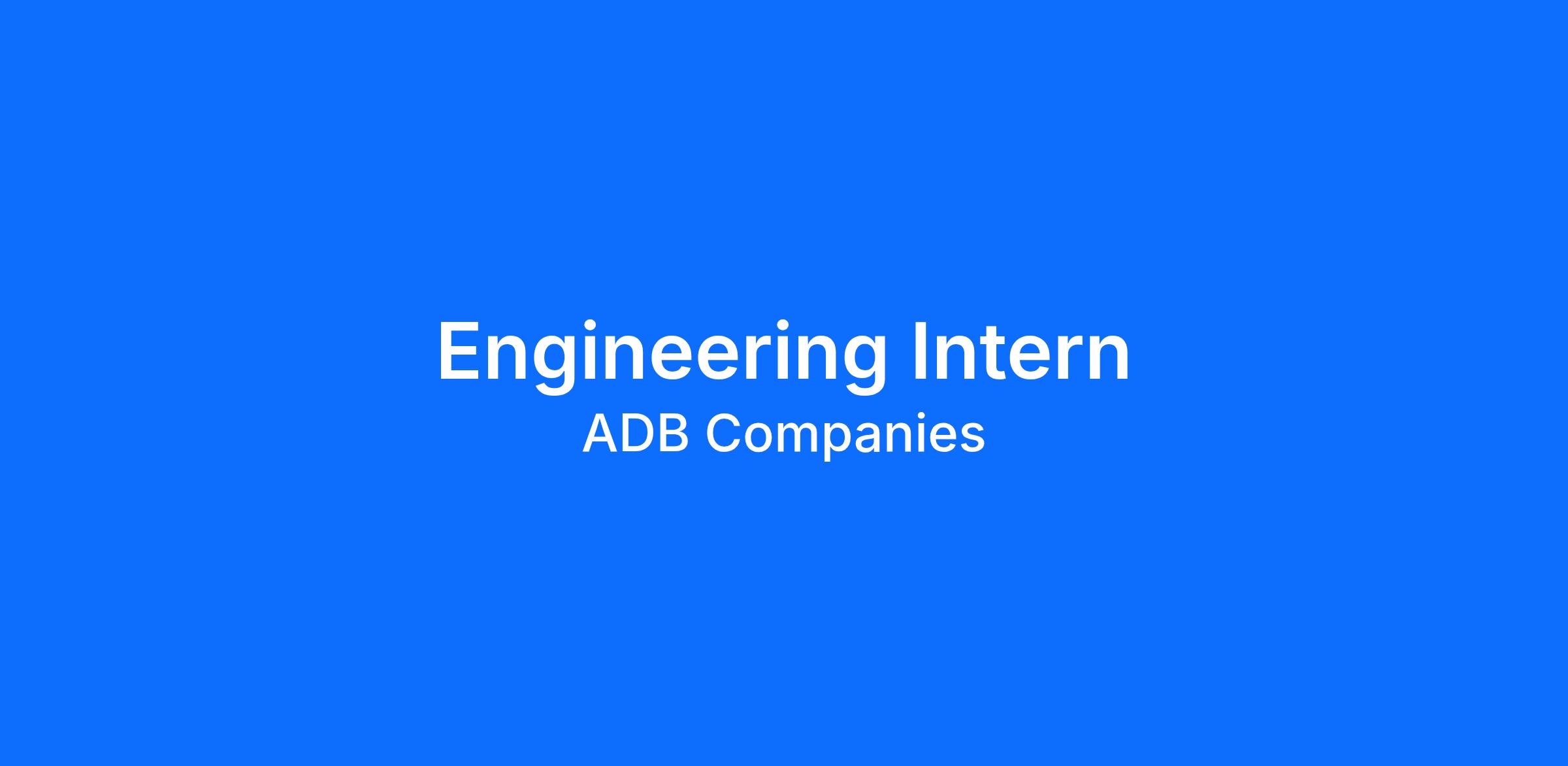 ADB is seeking a motivated and passionate Intern to support the Engineering team in day-to-day functions of the department. During the internship the goal is to build upon your educational knowledge and develop the skills and experience needed to be successful in all aspects of the Engineering team’s processes. The ideal candidate will have a GPA of 2.5 or higher with a strong work ethic and ALL IN attitude to achieve results.