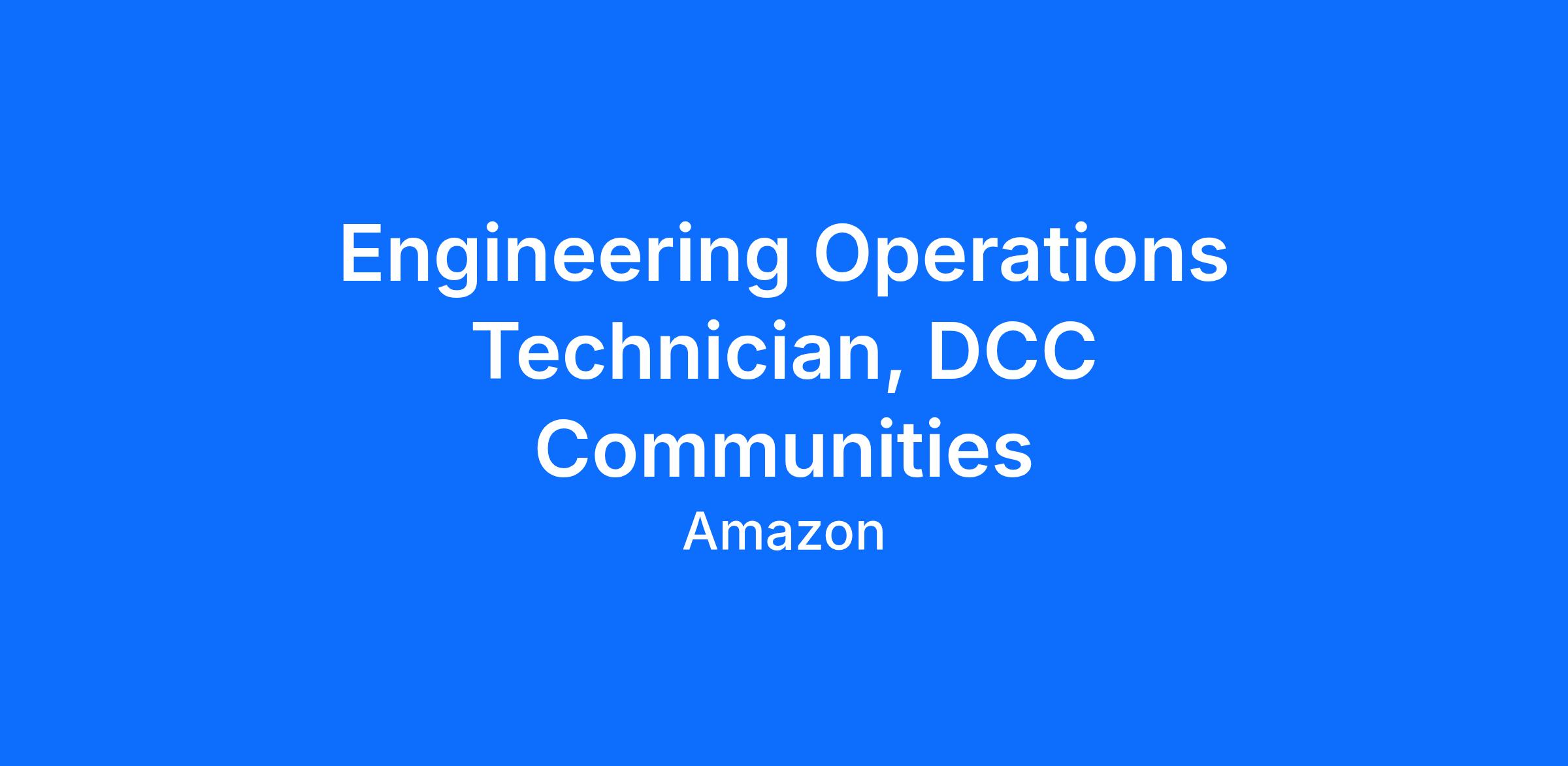 Engineering Technicians are Amazon’s front line when it comes to hands-on electrical and mechanical equipment troubleshooting. They will maintain, operate, and troubleshoot, Data Center Operation’s Mission Critical Facilities, which includes stand-by diesel generators and related fuel systems, as well as three phase electrical systems such as: switch gear, UPSs, PDUs, wet cell batteries and associated systems, CRAC, centrifugal chillers, cooling towers/water chemical system, air handlers and associated systems, pumps, & motors.