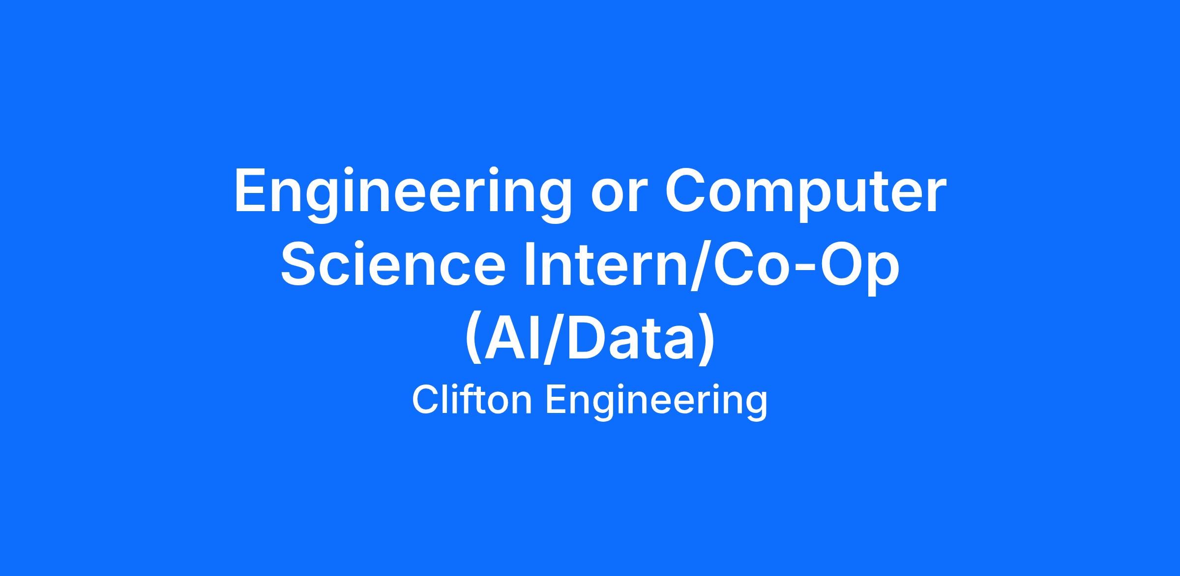 Clifton is seeking an Engineering or Computer Science student to join our Calgary office for an 8-month internship or co-op beginning in May 2026. In this role, you will support Clifton’s multi-disciplinary project teams on a variety of tasks and assignments, gaining hands-on experience and insight into how AI can enhance engineering and business workflows. You will develop a strong understanding of practical engineering applications while completing a meaningful business project focused on AI-enabled project delivery.