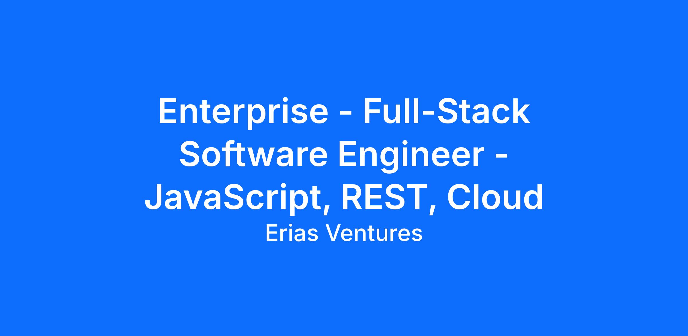 Enterprise - Full-Stack Software Engineer - JavaScript, REST, Cloud