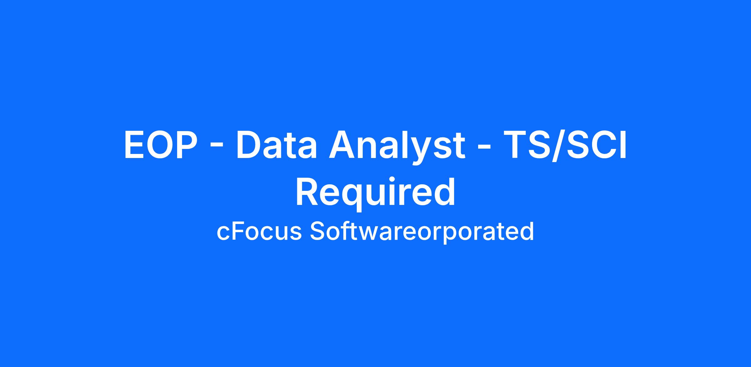 cFocus Software seeks a Data Analyst to join our program supporting the Executive Office of the President (EOP). This position is remote. This position requires a TS/SCI clearance.Qualifications: