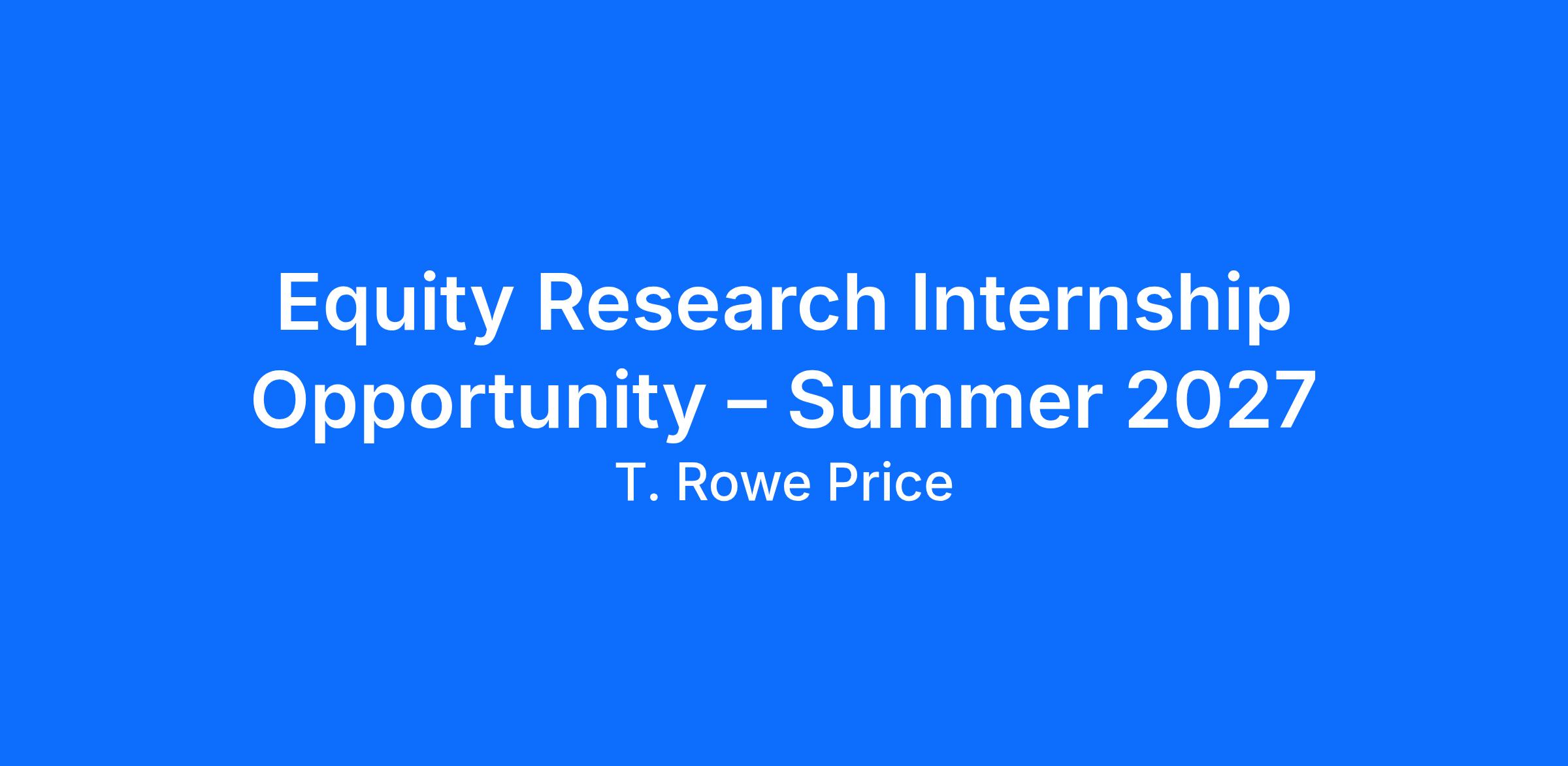 Community / Marketing Title: Equity Research Internship Opportunity – Summer 2027