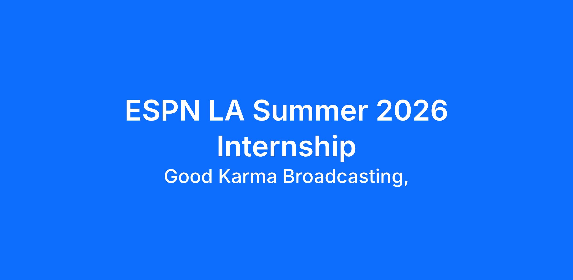 Good Karma Brands ESPN Los Angeles is currently recruiting for our 2026 summer internship program. This is a part-time, paid internship based in our Los Angeles office which will provide an excellent opportunity for candidates to collaborate with assets such as ESPN LA 710 Radio, ESPN LA App, ESPNLA.com and @espnlosangeles’ social media platforms. The ideal candidate will be a proactive, engaged self-starter with an interest in sports media & marketing and will gain hands-on experience in the areas of promotional event marketing, new business development, and sports content creation.