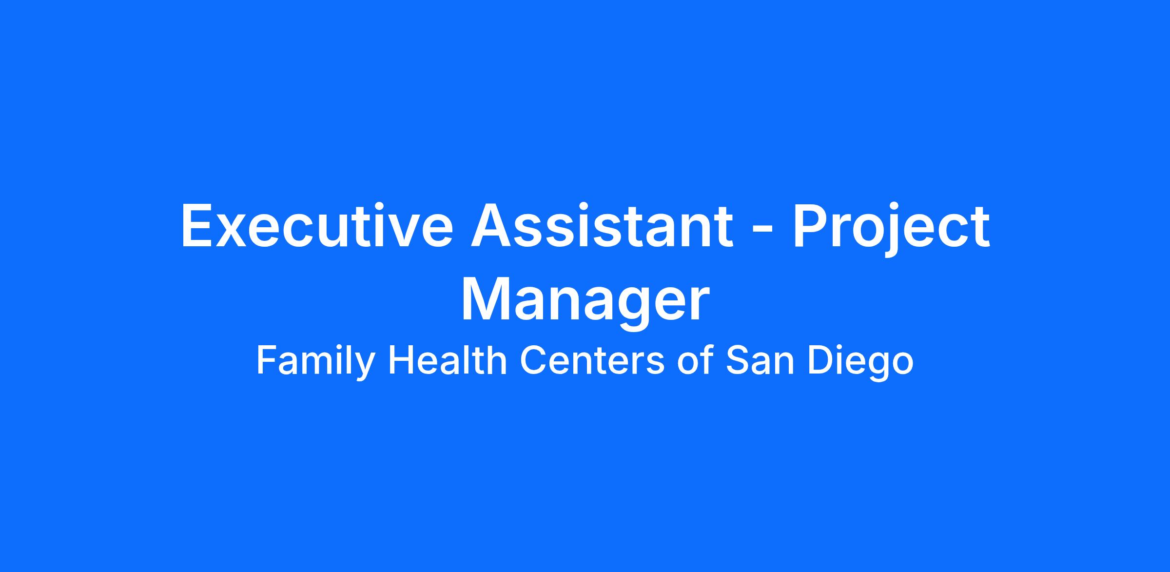 Family Health Centers of San Diego is looking for an Executive Assistant, Project Manager who plays a critical role in supporting the Chief Operations Officer, offering a combination of administrative process expertise and project management skills to advance organizational objectives.