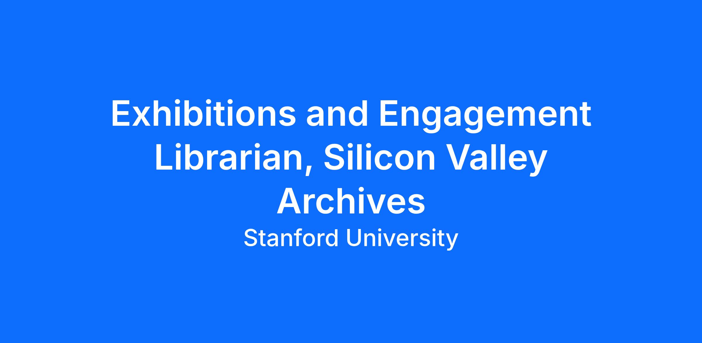 <p class="MsoNormal"><span style='font-family:"Arial",sans-serif;'><span lang="EN" style='mso-fareast-font-family:"Times New Roman";'>A cover letter and resume are required. Position will be filled no sooner than September 1, 2026.</span></span></p><p class="MsoNormal"> </p><p class="MsoNormal" style="background-color:white;"><span style='color:black;font-family:"Arial",sans-serif;'><span lang="EN" style="mso-color-alt:windowtext;mso-fareast-font-family:Arial;">Stanford University Libraries is seeking a full-time Exhibitions and Engagement Librarian, Silicon Valley Archives to join the Humanities and Area Studies Resources Group.</span><span lang="EN" style="mso-color-alt:windowtext;mso-fareast-font-family:Arial;mso-spacerun:yes;"> </span></span><span style='background-color:white;color:black;font-family:"Arial",sans-serif;'><span lang="EN" style="mso-color-alt:windowtext;mso-fareast-font-family:Arial;mso-highlight:white;">The </span></span><a href="ht...