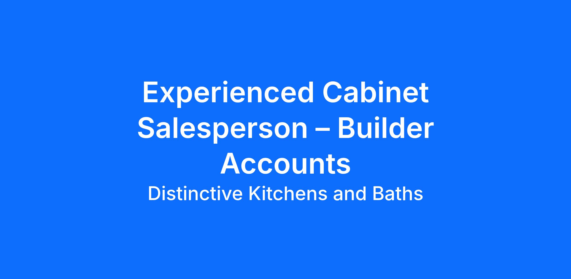 We are seeking a highly motivated and experienced Cabinet Salesperson with a strong background in working with builders and contractors. The ideal candidate will have proven success in driving cabinet sales, managing builder relationships, and delivering exceptional customer service. This role requires a combination of sales expertise, technical product knowledge, and the ability to work collaboratively with both internal teams and external partners.