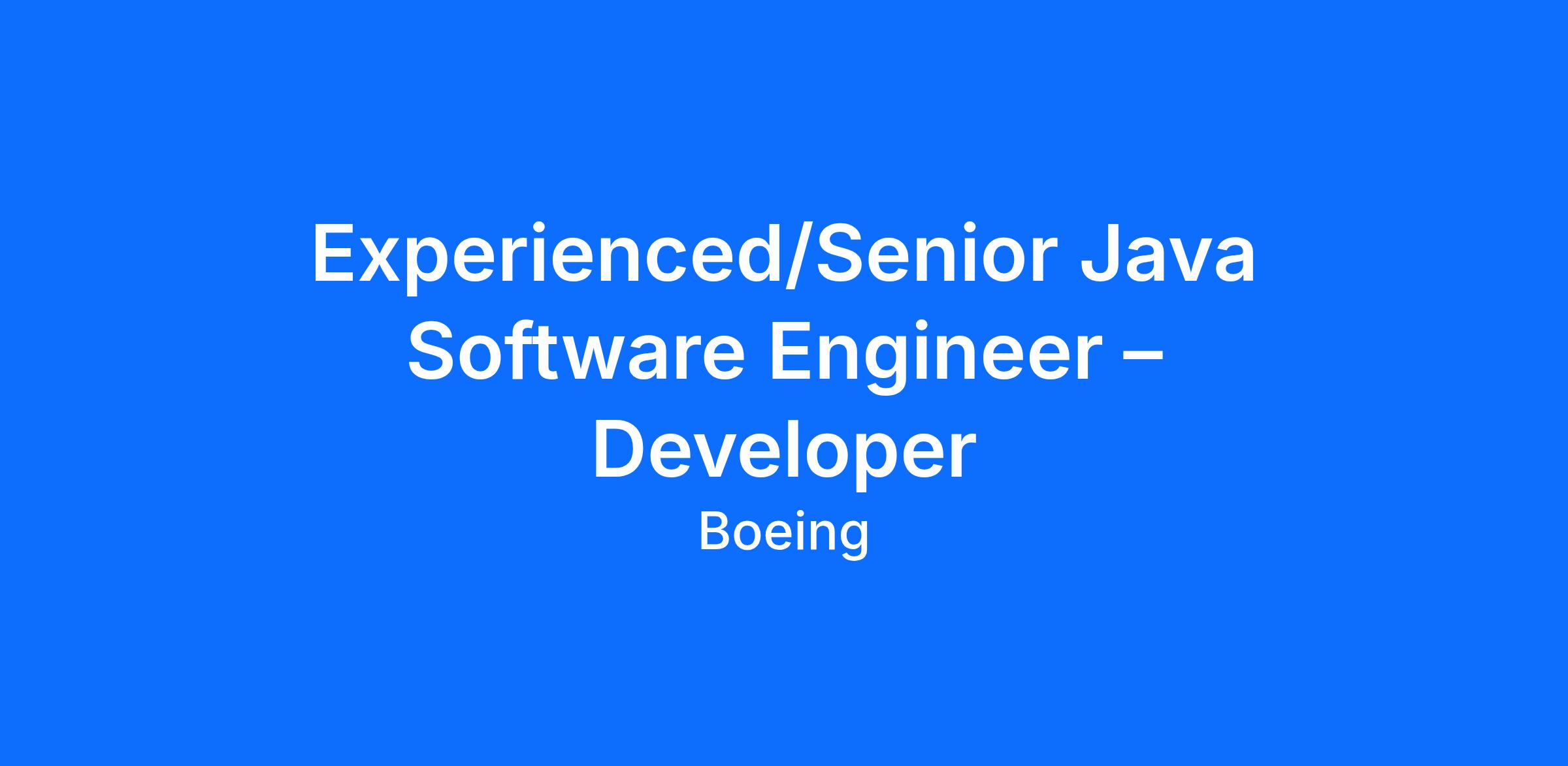 The Boeing CompanyThe Boeing Company is currently seeking an Experienced/Senior Java Software Engineer – Developer to support our Advanced Ground Architecture team located in Herndon, Virginia, Mesa, Arizona, and Seal Beach, California. This position will focus on supporting the Boeing Defense, Space & Security (BDS) Software Engineering organization.