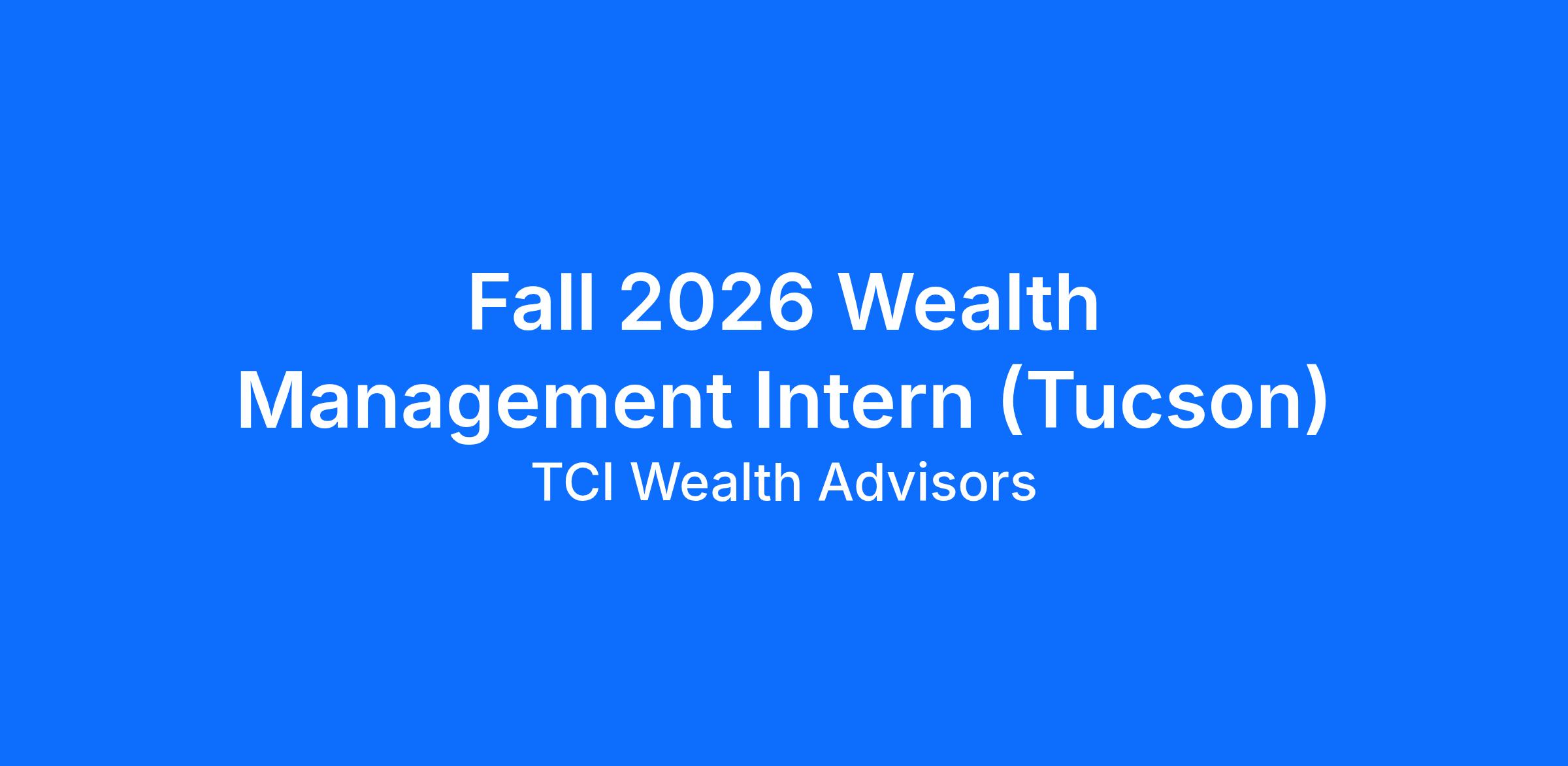 The TCI Wealth Advisors Wealth Management Internship Program immerses undergraduate students in a culture deeply rooted in exemplifying the firm’s core values by putting our clients needs first and caring about our TCI team of employees. This unique opportunity will provide real-world learning in developing and implementing comprehensive financial planning strategies with our team.