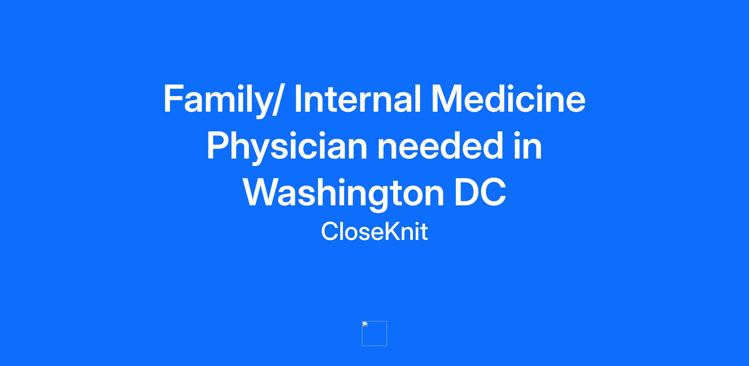 Family/ Internal Medicine Physician needed in Washington DC
