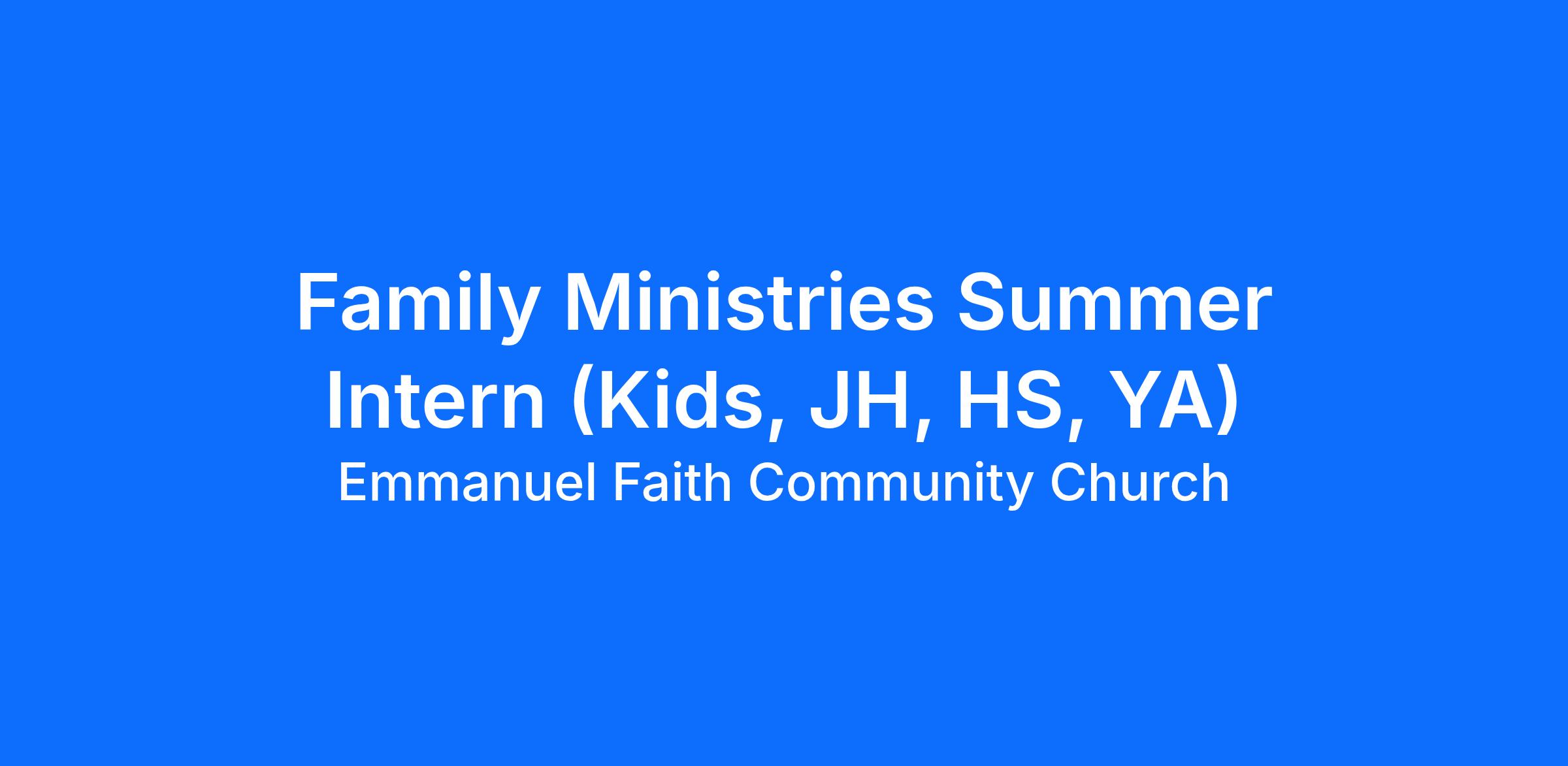 - Assist in the execution of Emmanuel Faith programs and events for children, students, and families.