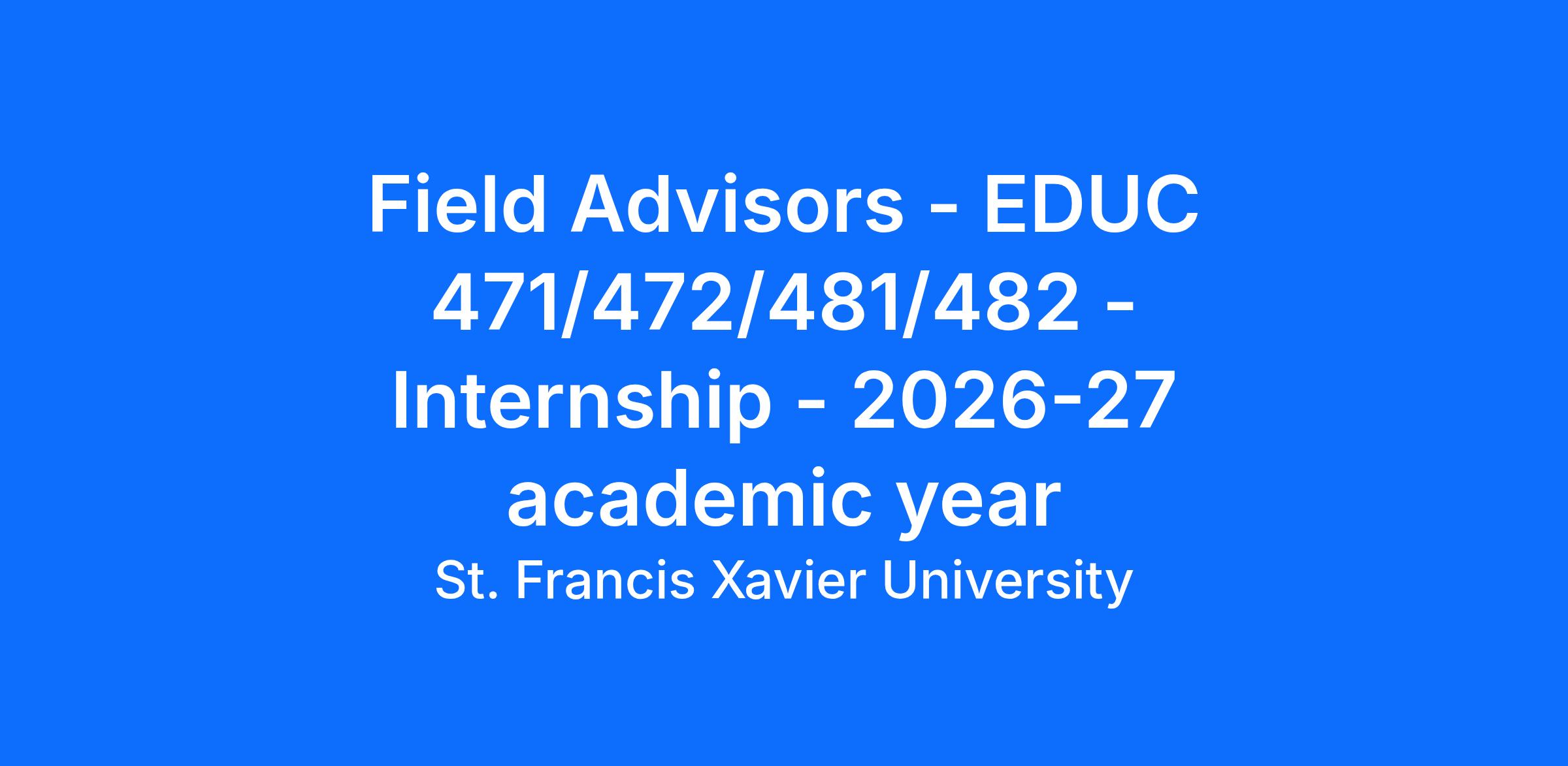 The Department of Teacher Education and StFX Online Learning & Professional Studies invites applications for part-time Field Advisors for the following courses: